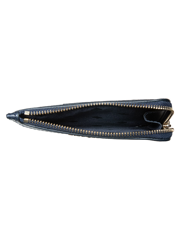 Crafted of refined grain leather with gold hardware. This card holder features key fob on zipper closure, two way spade jacquard lining in matching color, and multiple exterior pockets.