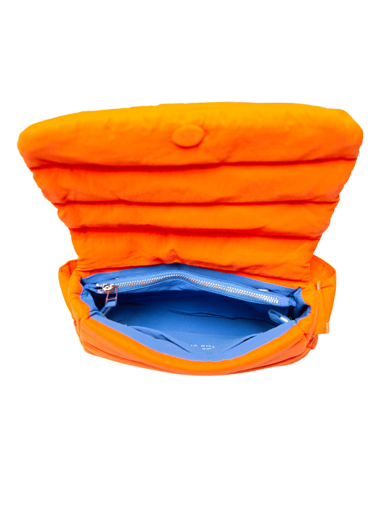 Made from water resistant nylon, this Poofy Bag can be carried on the shoulder or as a cross body bag by adjusting the straps, making it a versatile piece for casual days or formal evenings. Designed with a front flap with a magnetic closure,