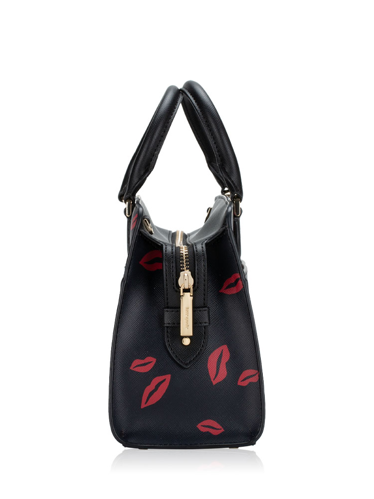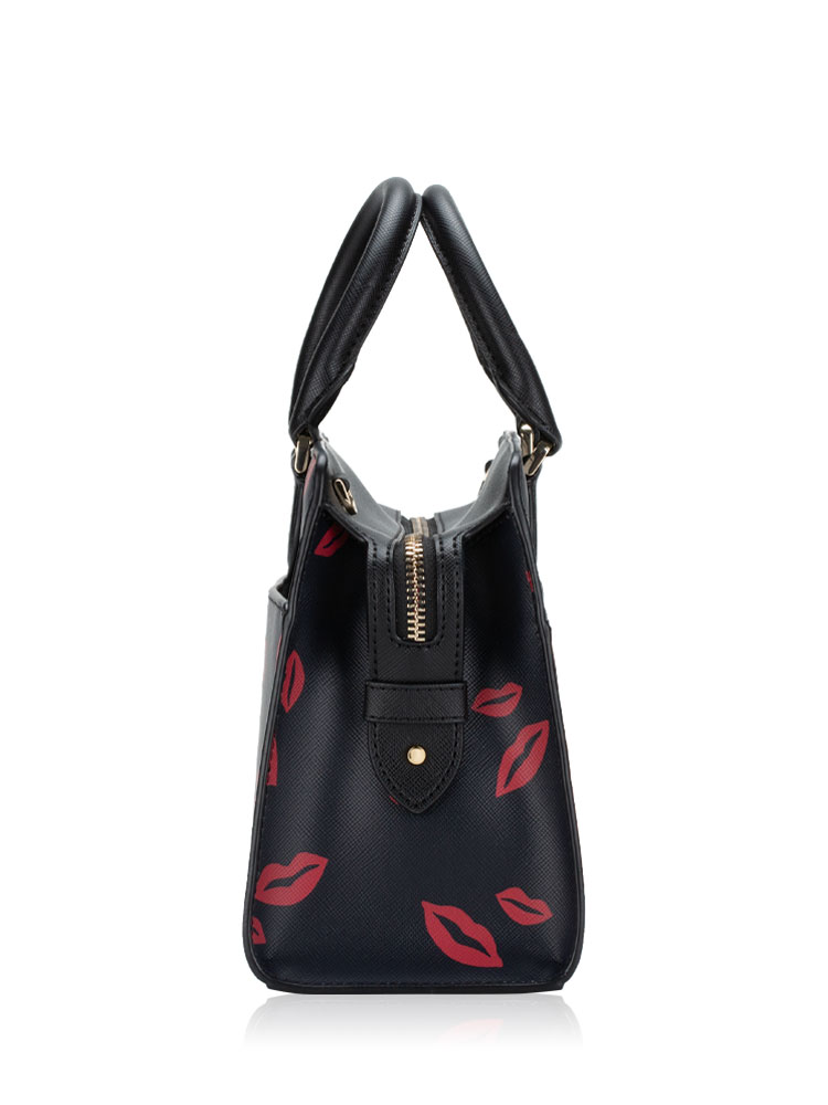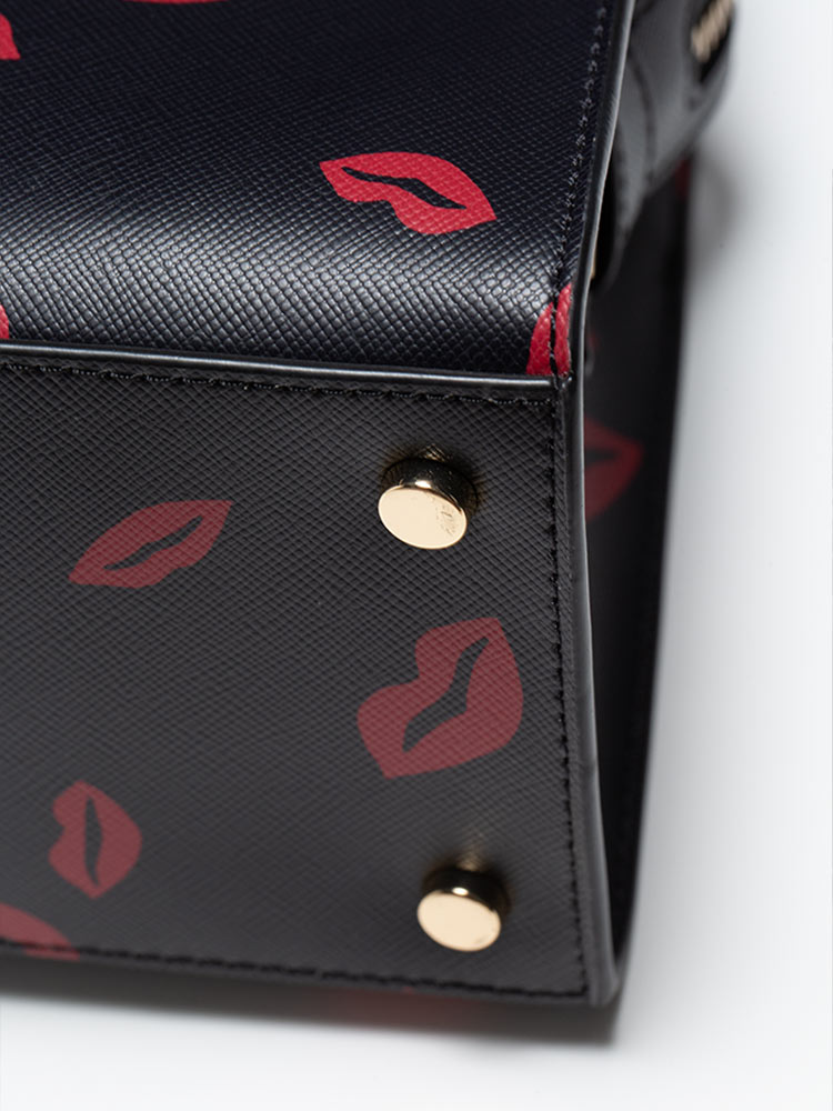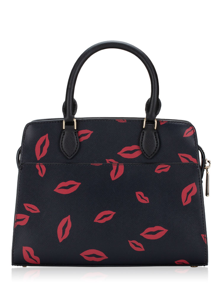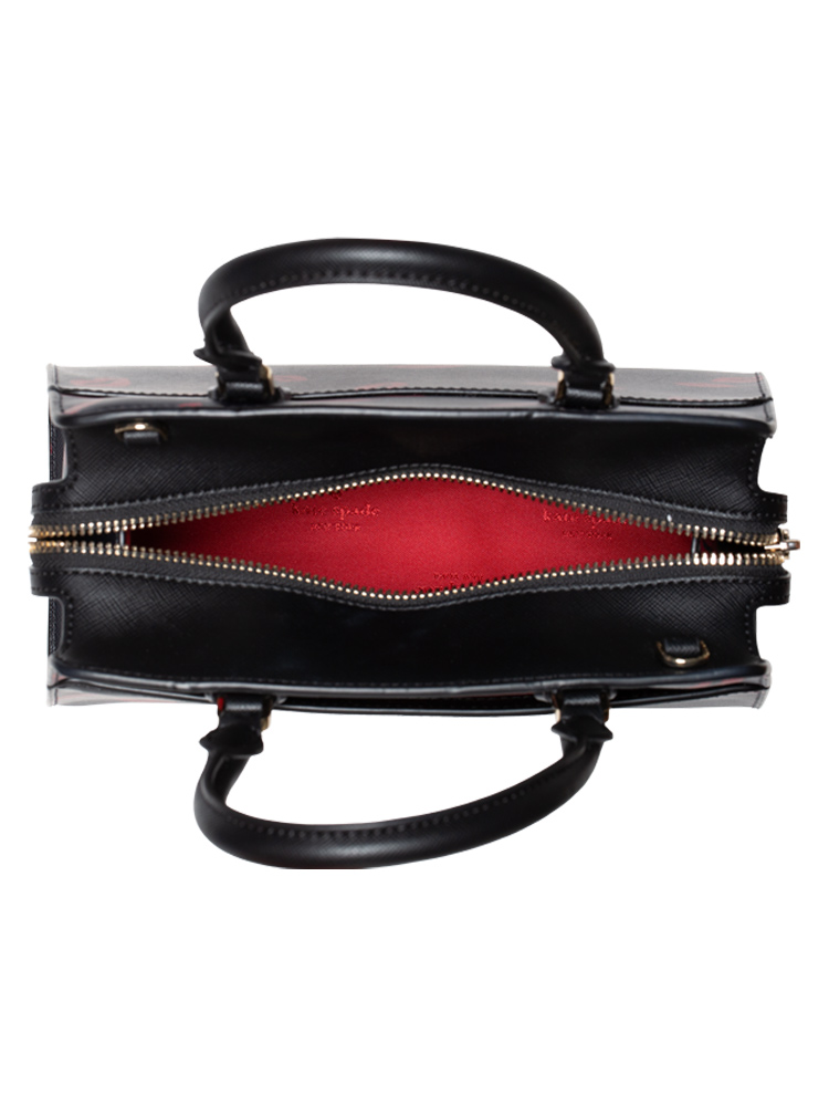 Made of saffiano leather. The bag features a zip closure that opens to jacquard lining with interior one zip pocket, one slip pocket and exterior one slip pocket at front.