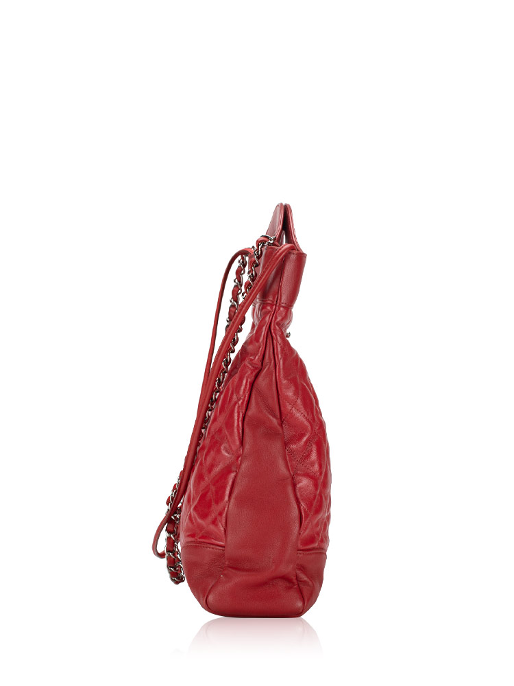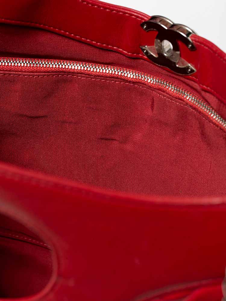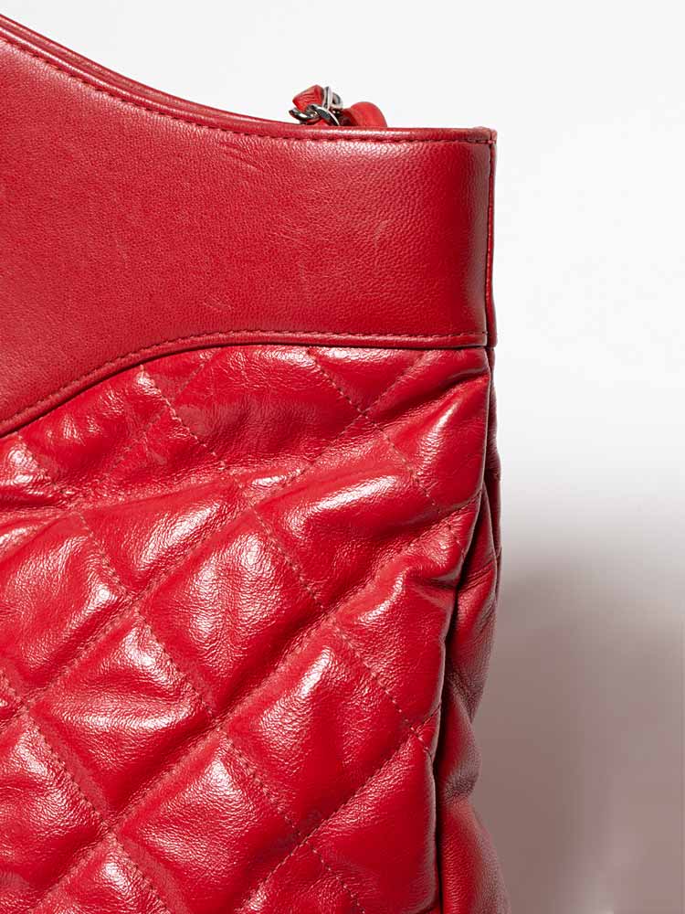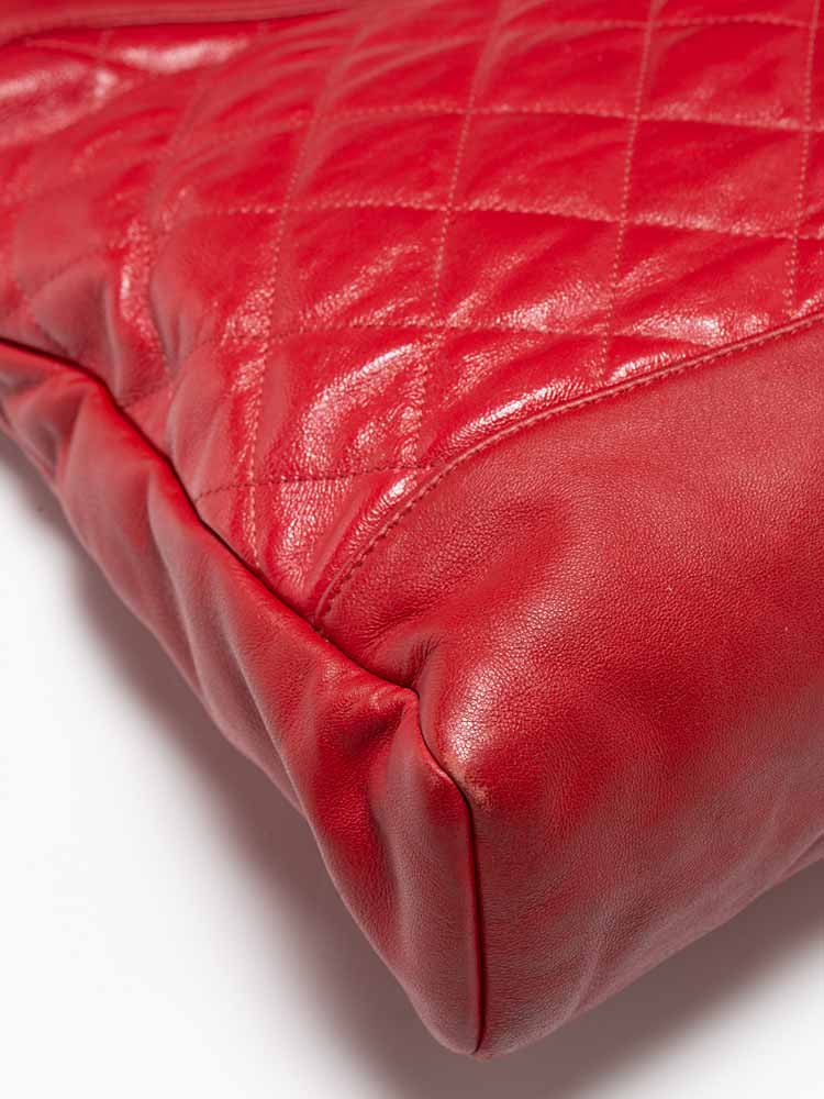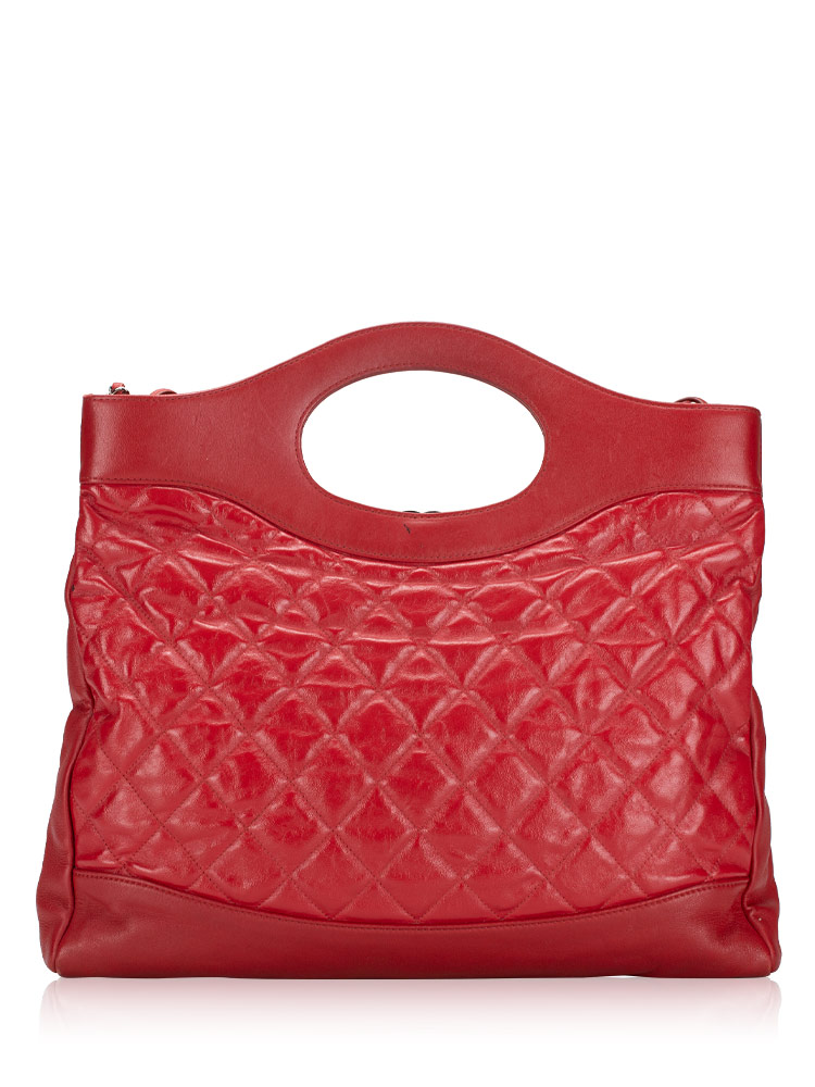 Shiny Crumpled Calfskin Large 31 Shopping Bag Red