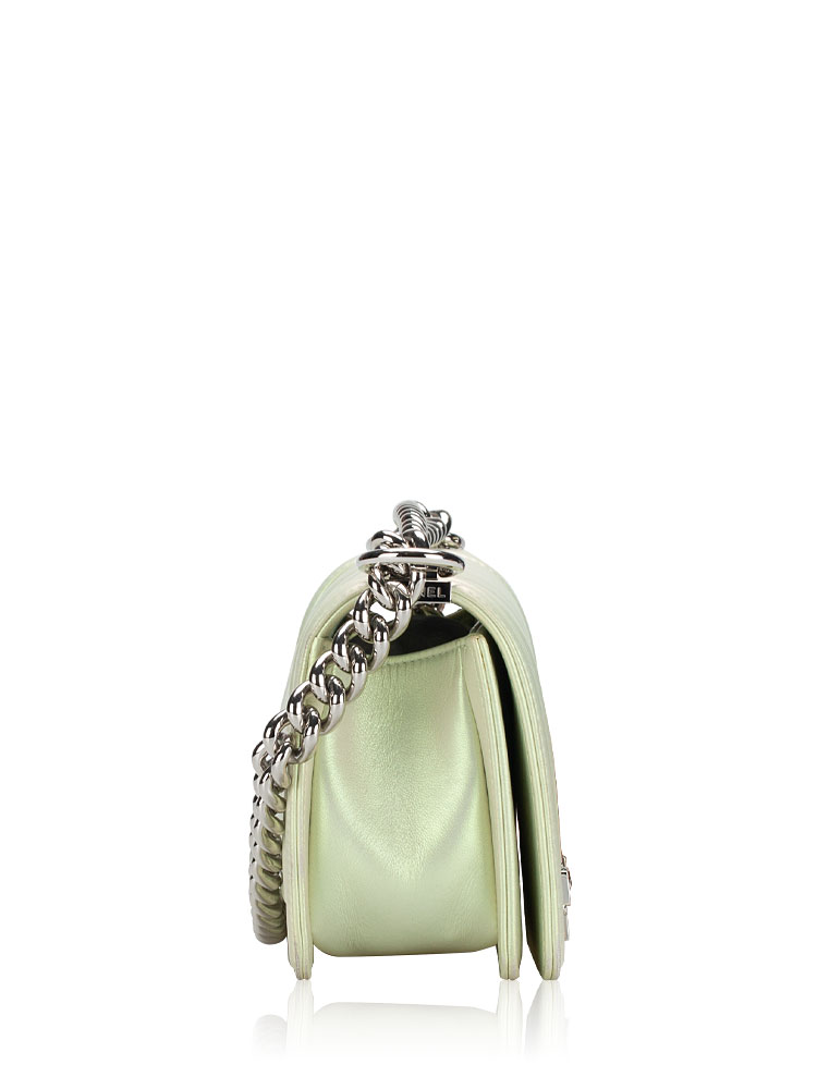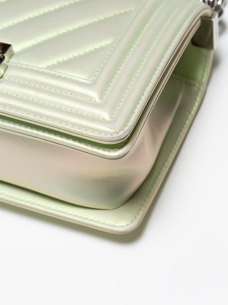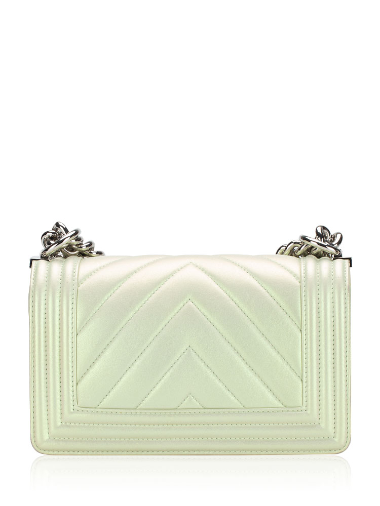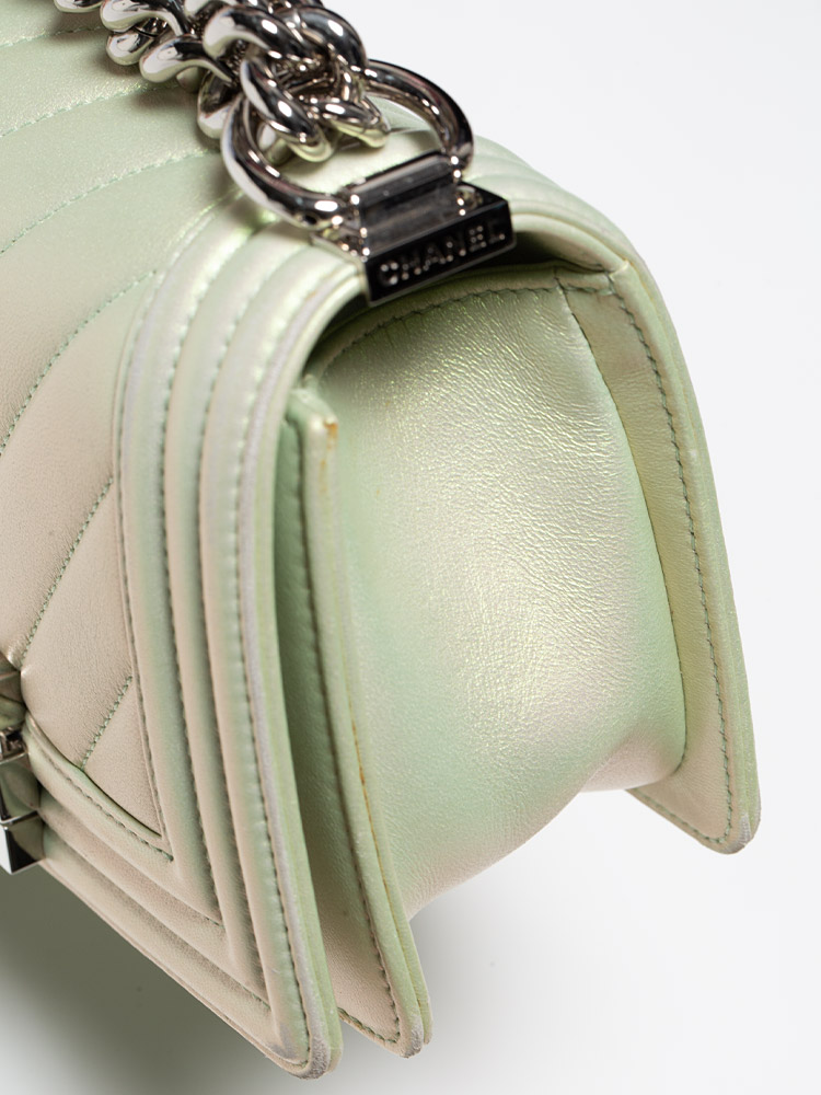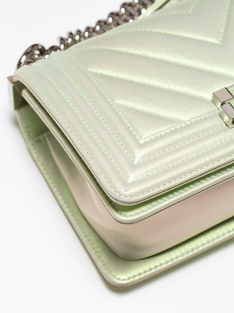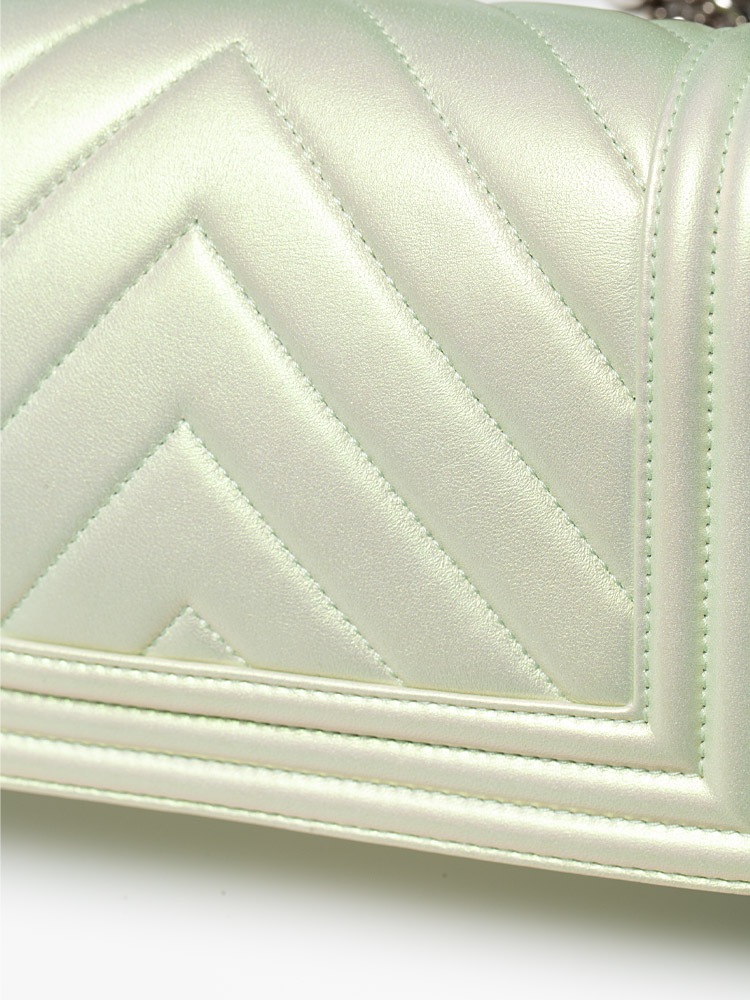 Iridescent Lambskin Chevron Small Boy Flap Bag Green