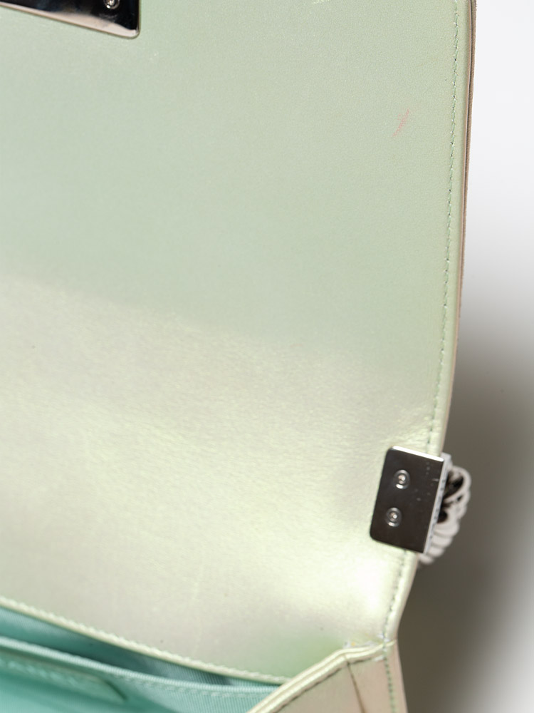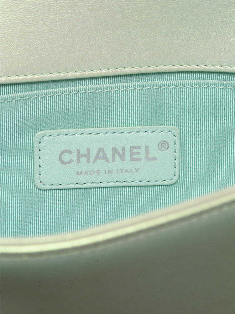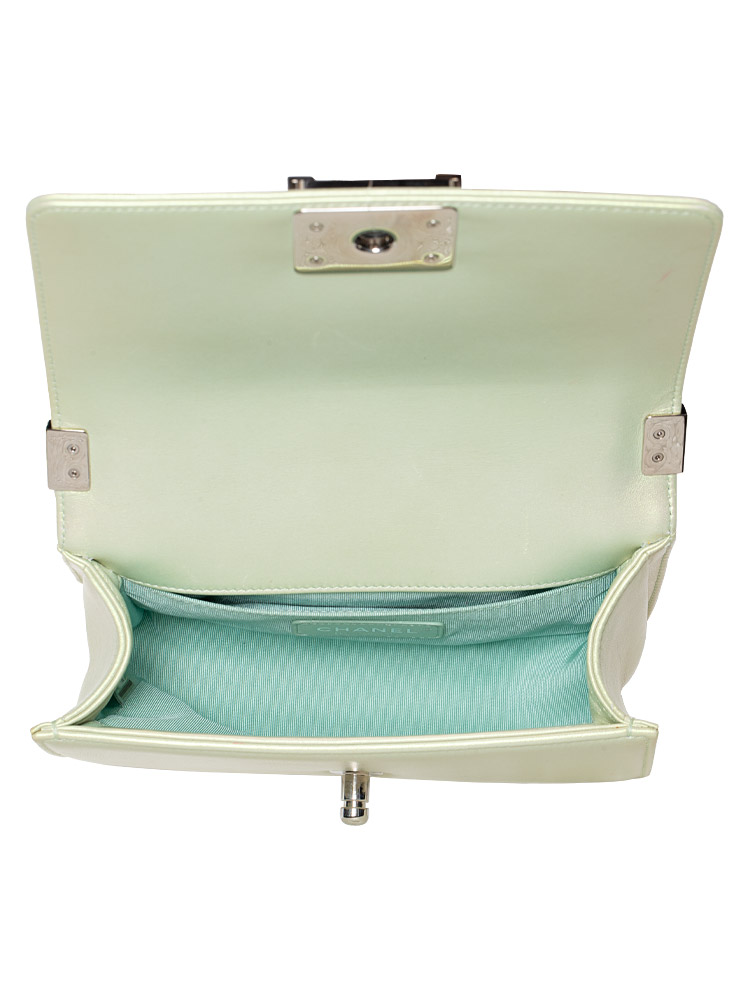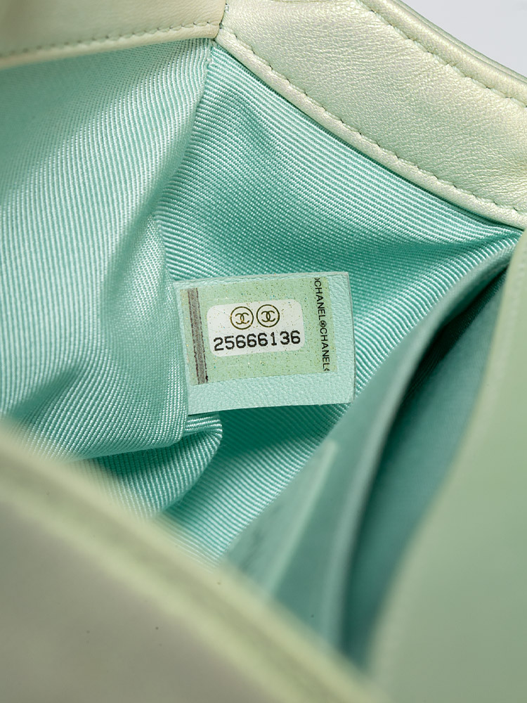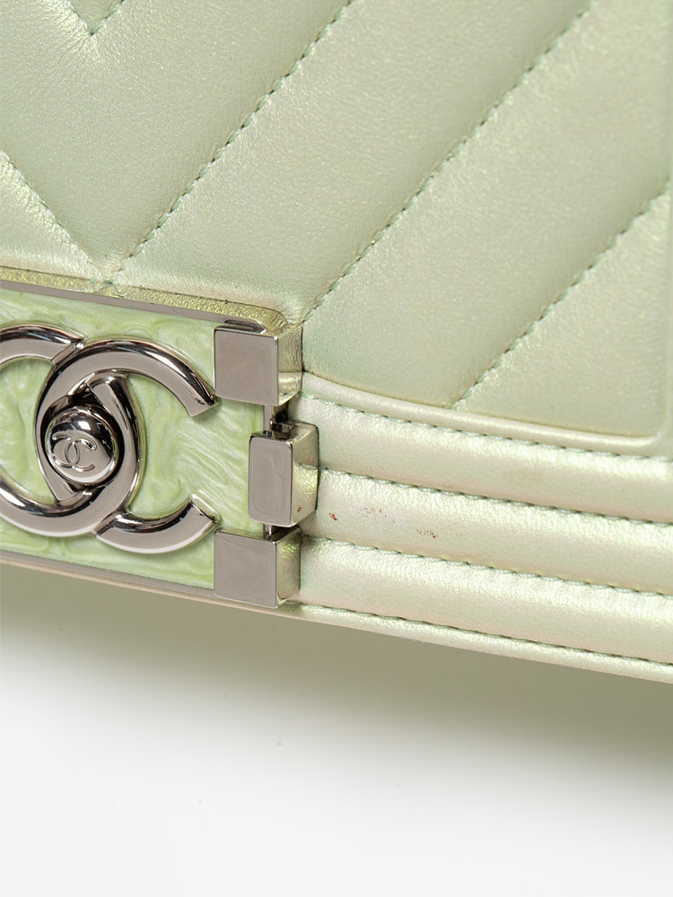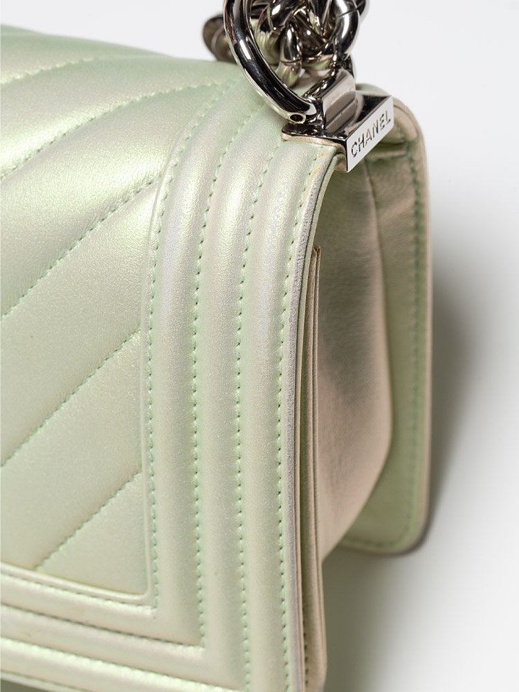 Iridescent Lambskin Chevron Small Boy Flap Bag Green