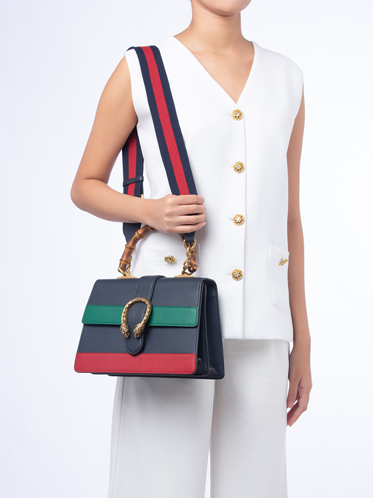 Bamboo Web Dionysus Medium Top Handle Bag Navy Green Red