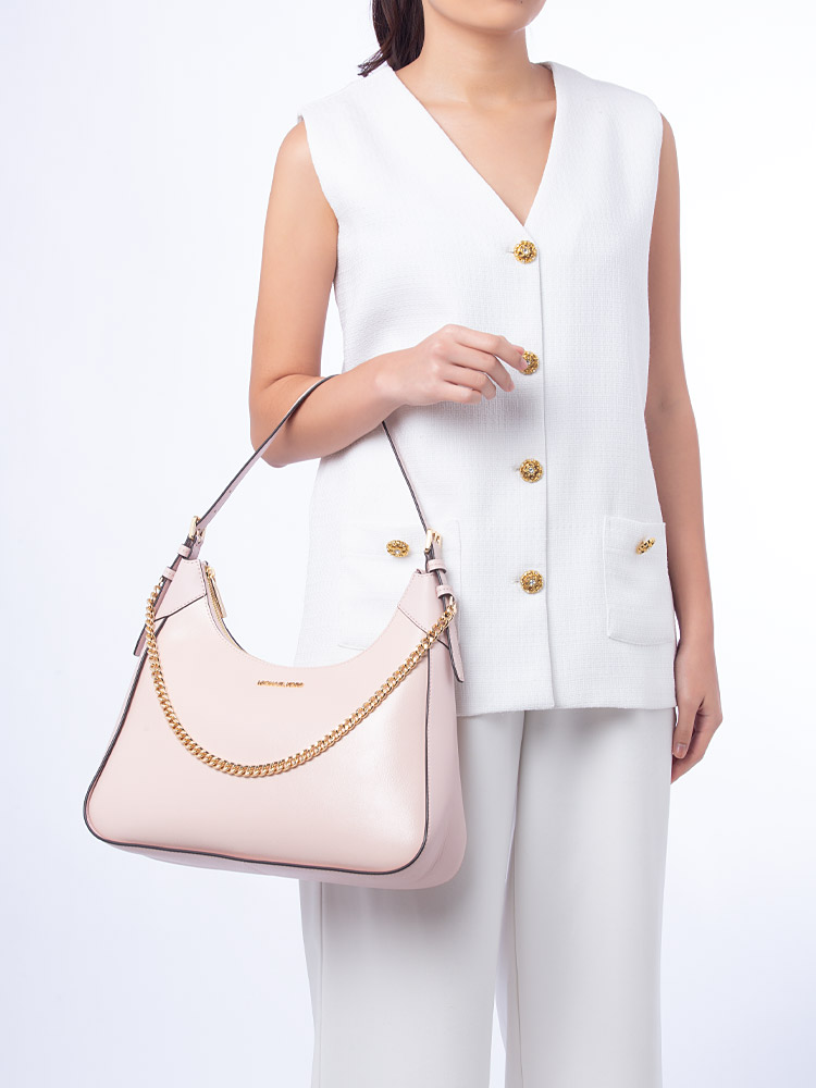 Wilma Leather Large Chain Shoulder Bag Powder Blush