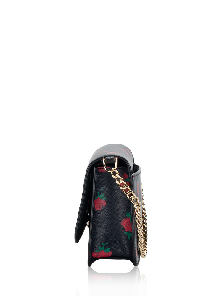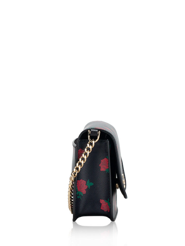 Madison Rose Toss Printed Small Flap Crossbody Black Multi