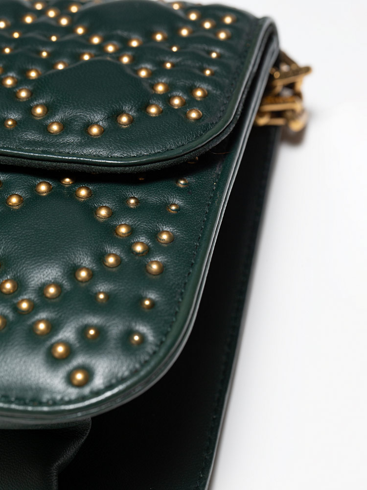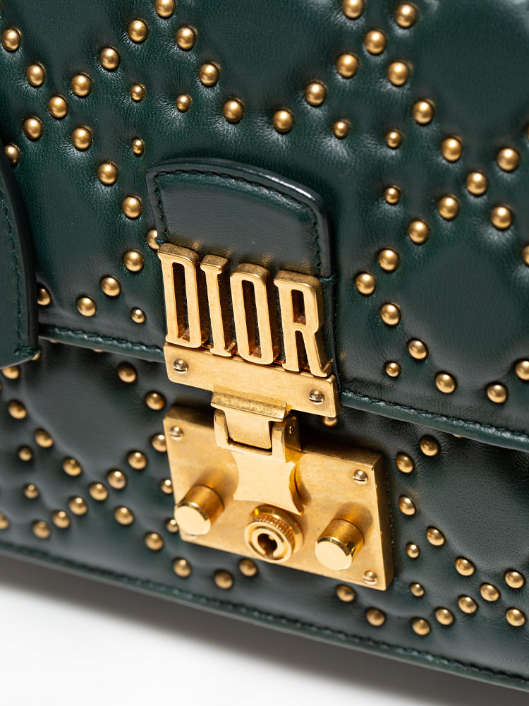Lambskin Cannage Studded Dioraddict Large Flap Bag Green