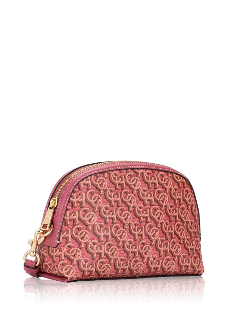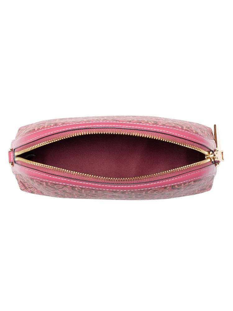 Made of printed coated canvas and smooth leather. The bag features a zip closure that opens to fabric lining with one slip pocket, adjustable and removable long strap.