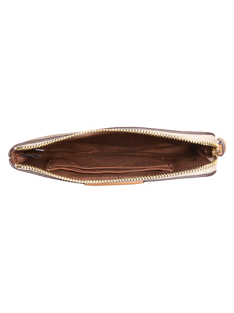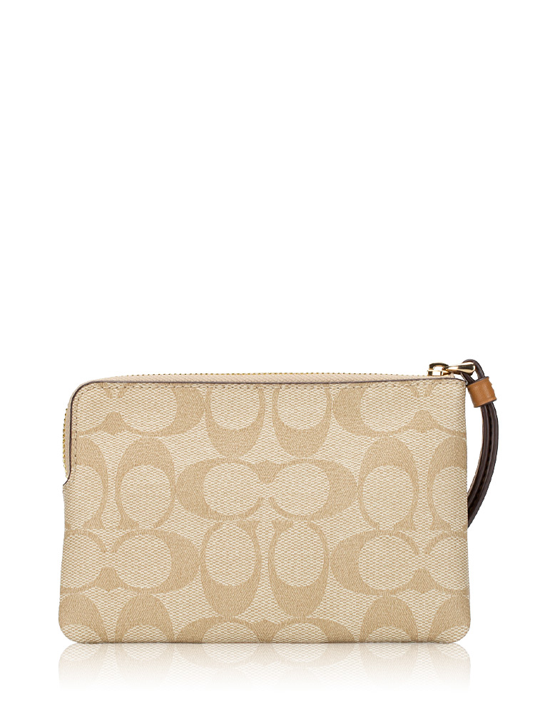 CS602 Signature Corner Zip Wristlet Light Khaki Light Saddle