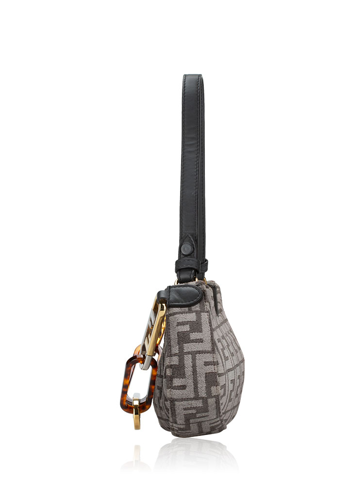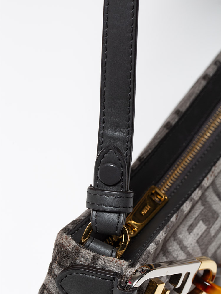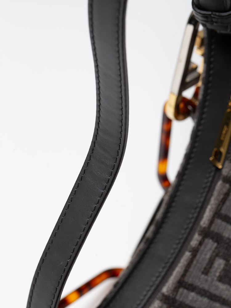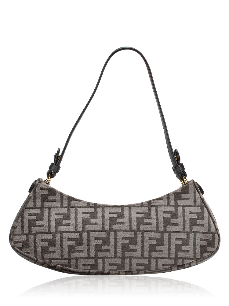 Vitello Seta Plexiglass FF O'Lock Swing Shoulder Bag Anthracite Asfalto