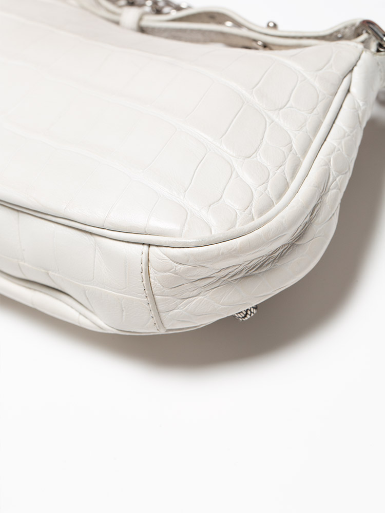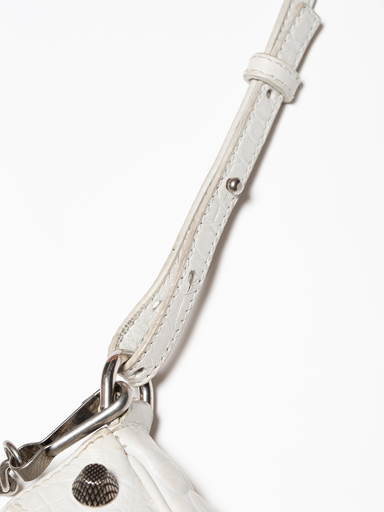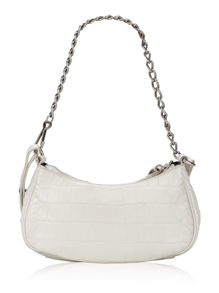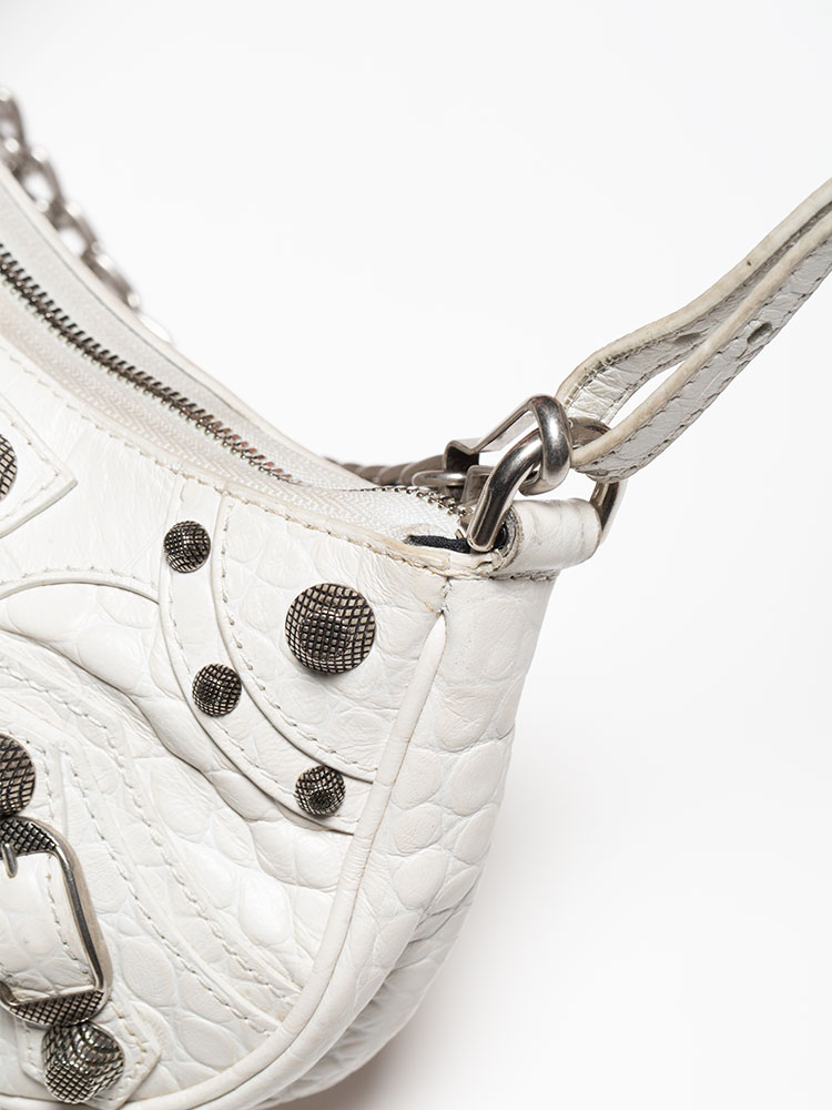 Calfskin Croco Effect Le Cagole Mini Purse Chain Shoulder Bag White