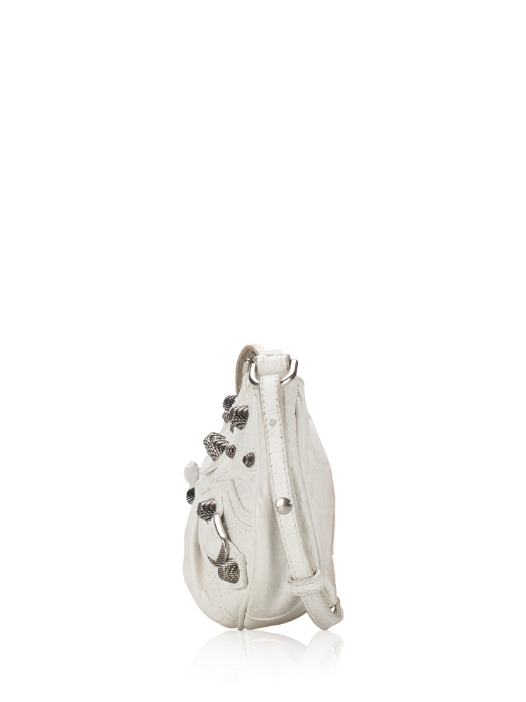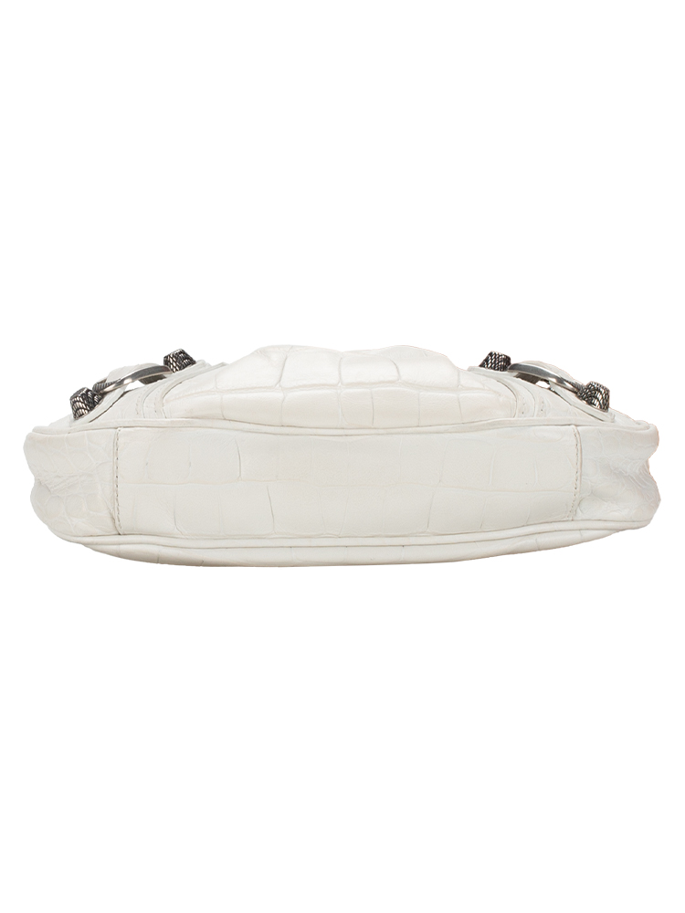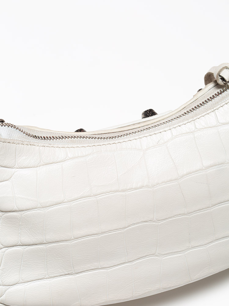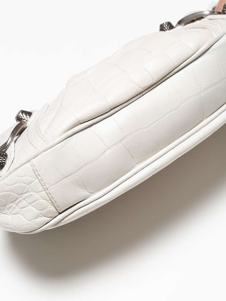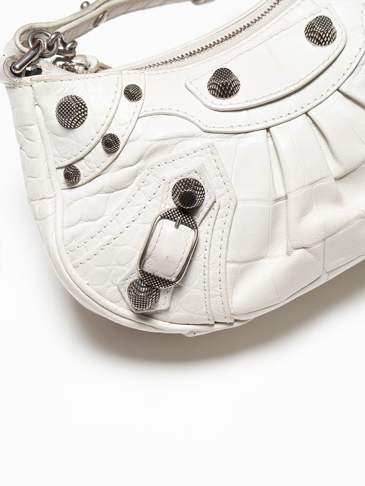 Calfskin Croco Effect Le Cagole Mini Purse Chain Shoulder Bag White