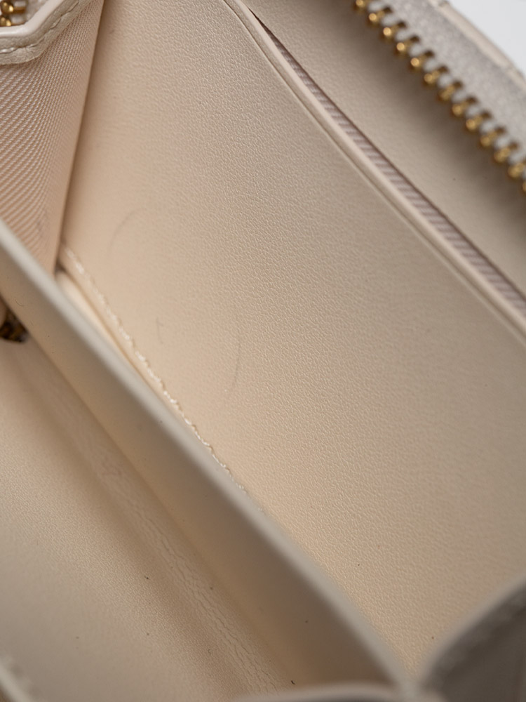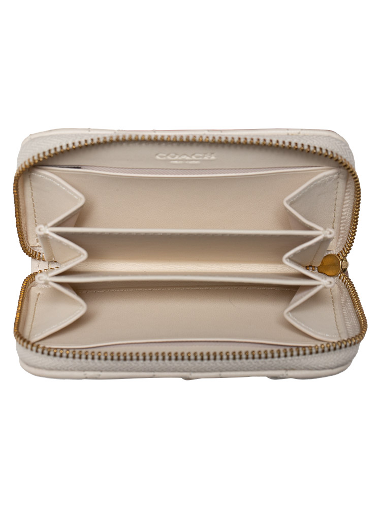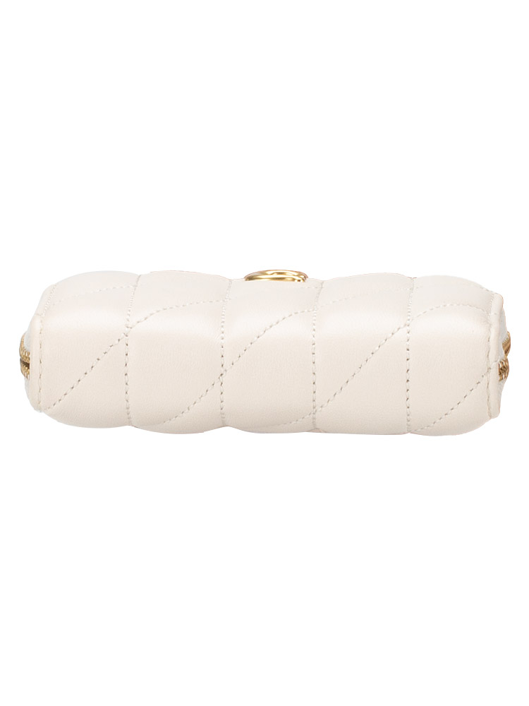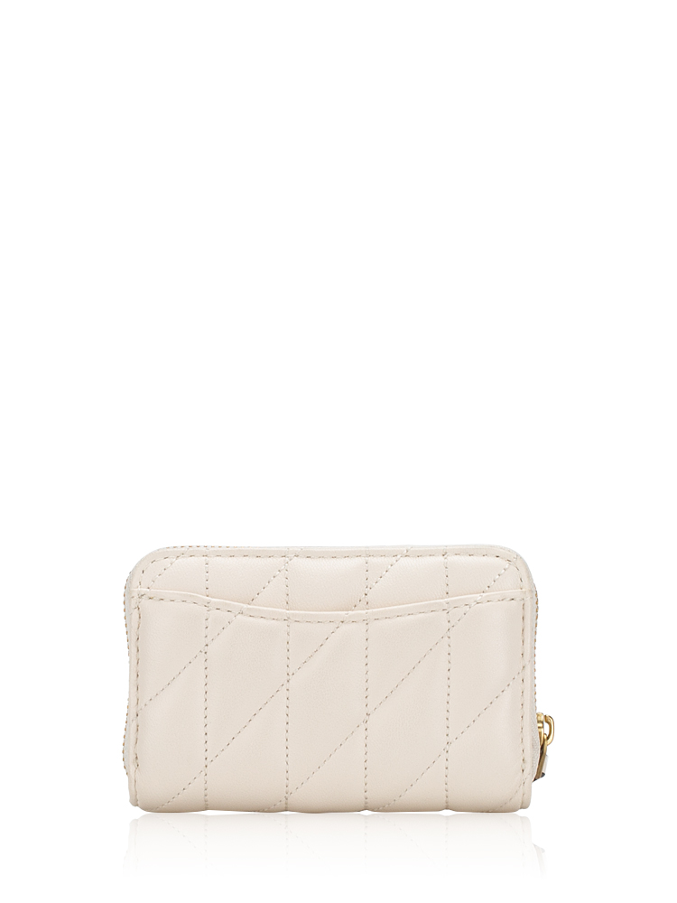 CM505 Pillow Quilting Leather Small Zip Card Case Chalk