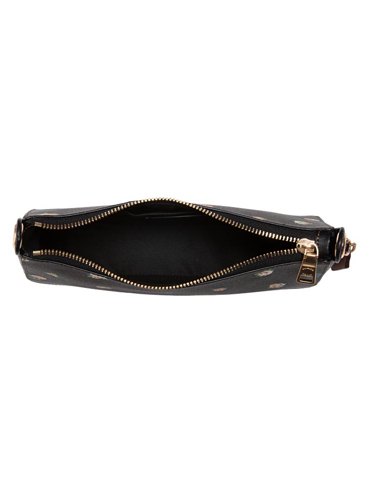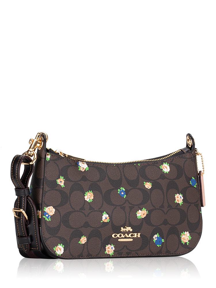 C6823 Signature Jes Baguette Vintage Mini Rose Print Crossbody Brown Black Multi