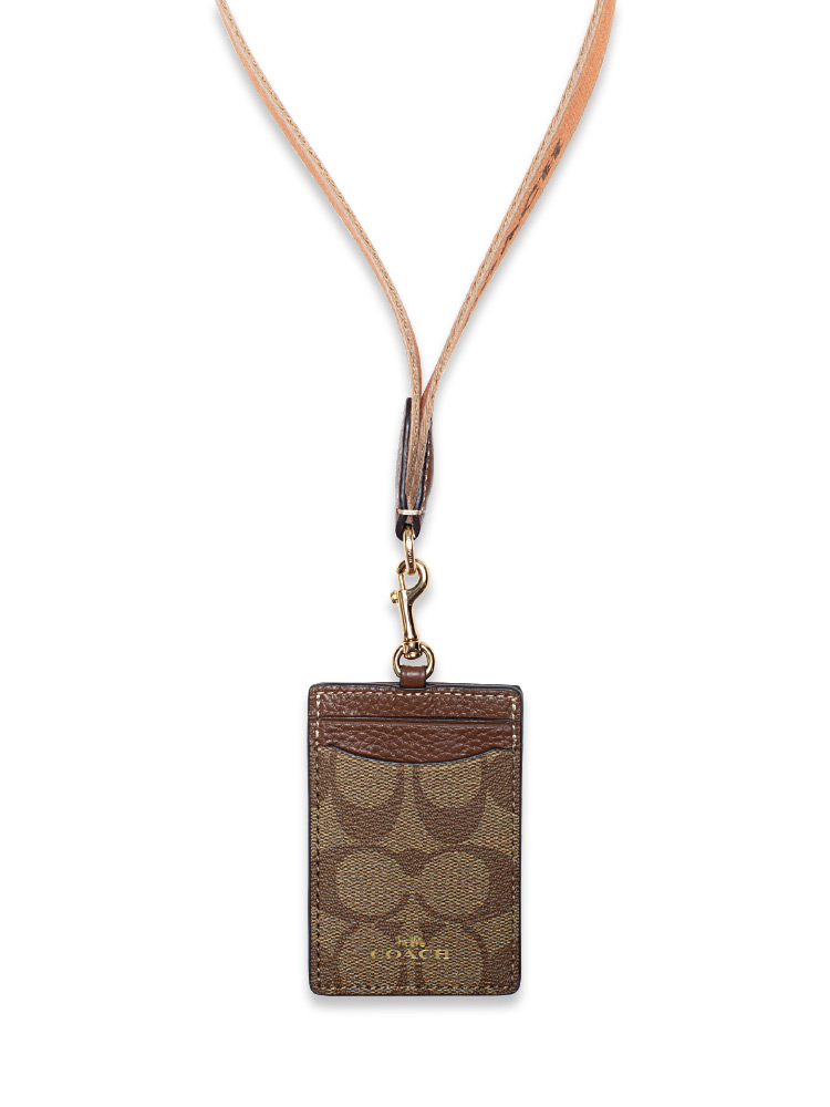 Made of signature coated canvas with leather trim. It equipped with two card slots and an ID window with Coach embossed logo lettering.