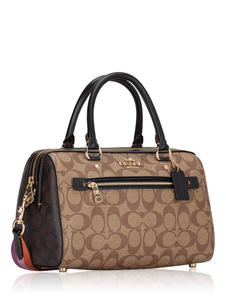 C7240 Signature Blocked Web Strap Rowan Satchel Khaki Brown Multi