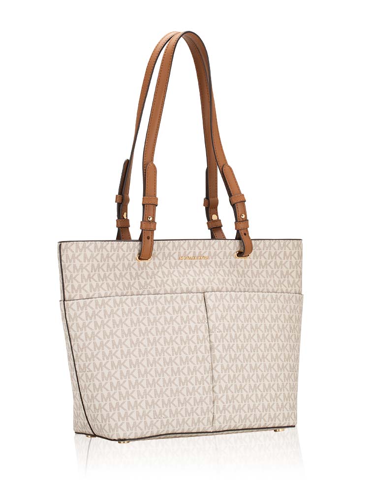 Signature Bedford Medium Top Zip Pocket Tote Vanilla Acorn Gold