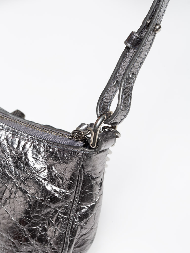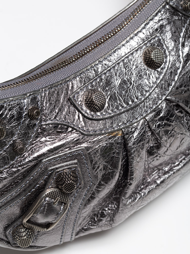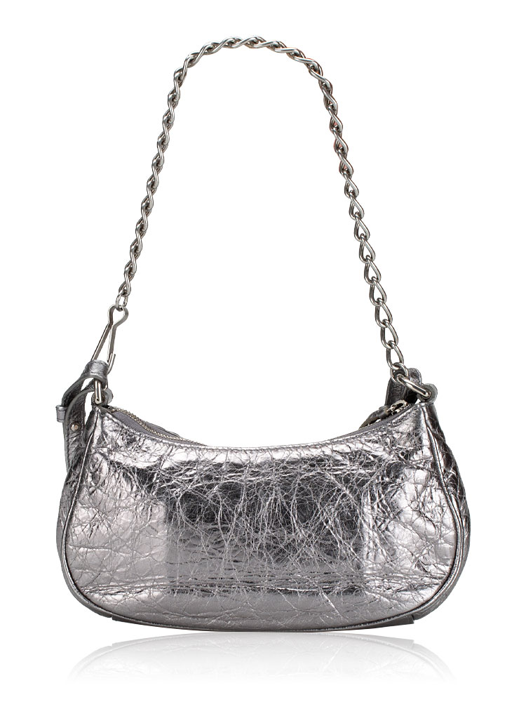 Metallic Le Cagole Mini Chain Shoulder Bag Silver