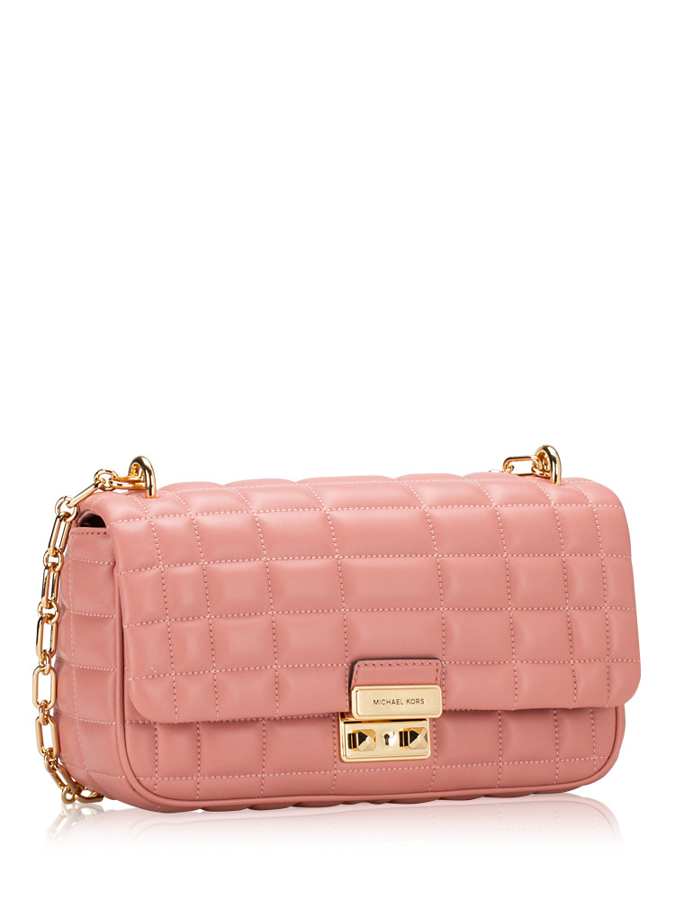 Tribeca Quilted Leather Large Convertible Shoulder Bag Sunset Rose