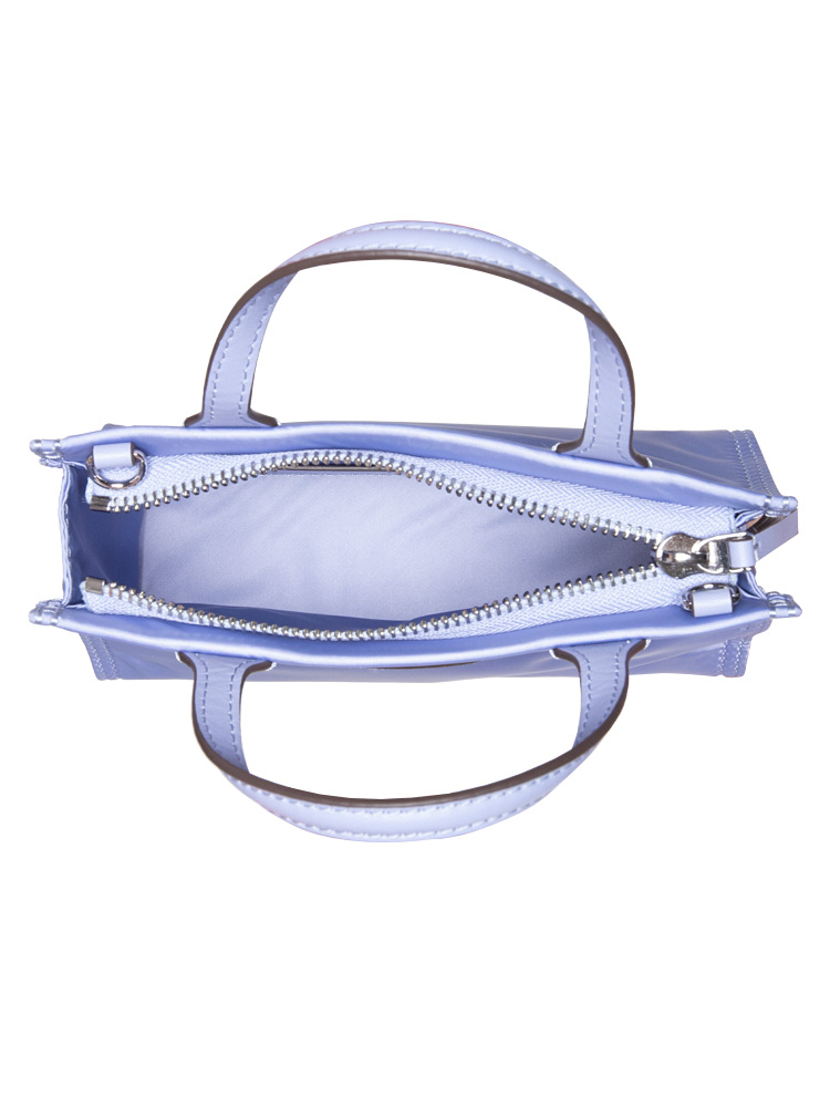 Made of nylon material. The bag features a zip closure that opens to nylon lining with interior one card slot.