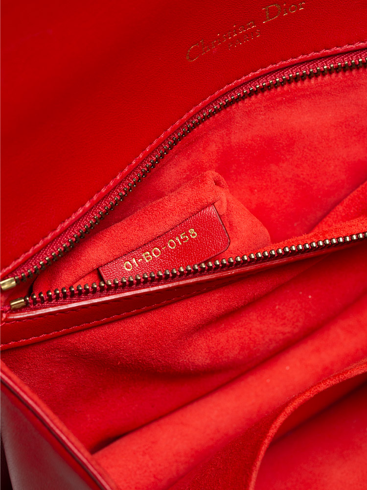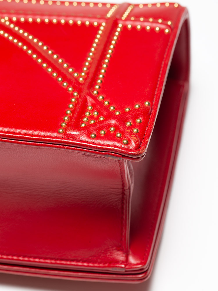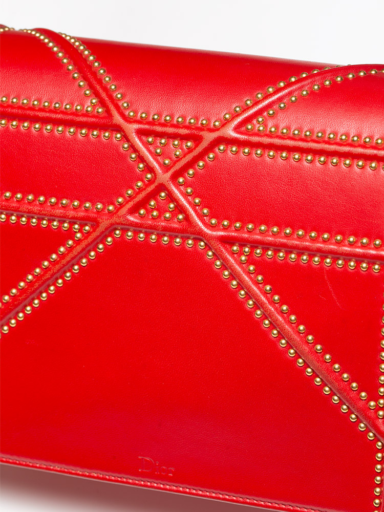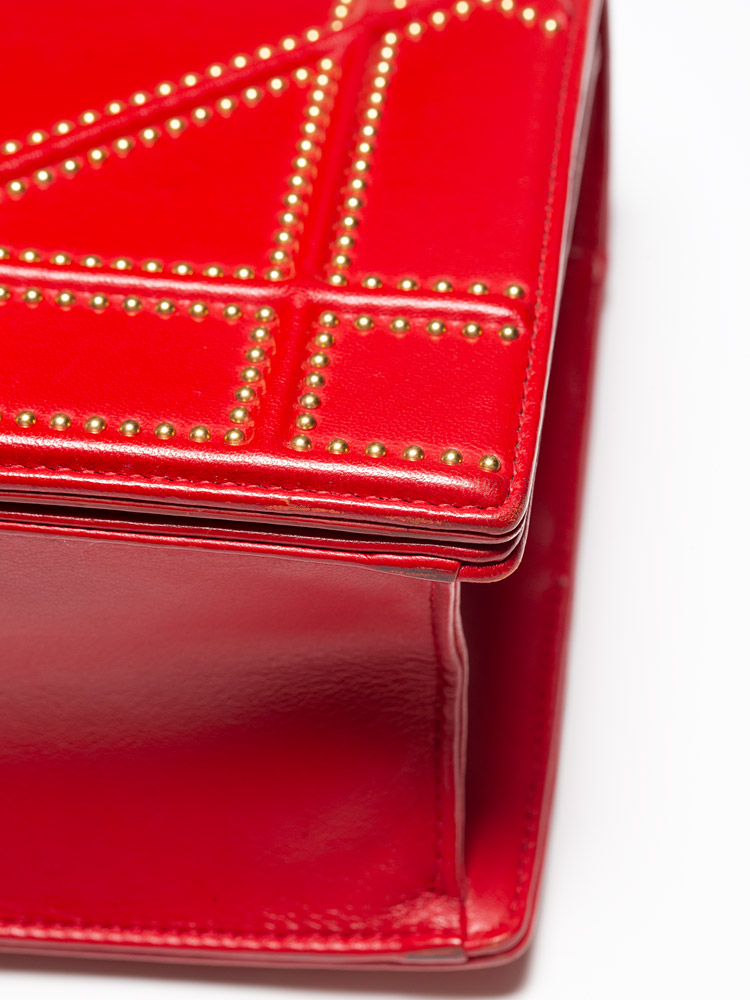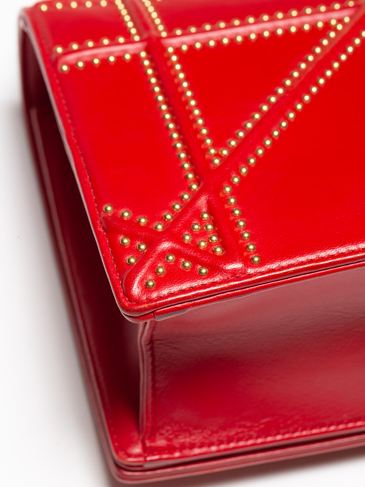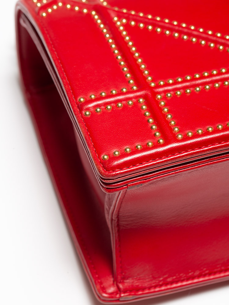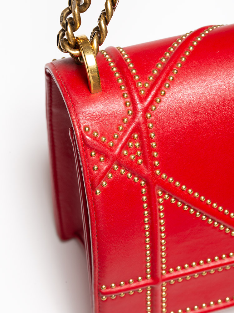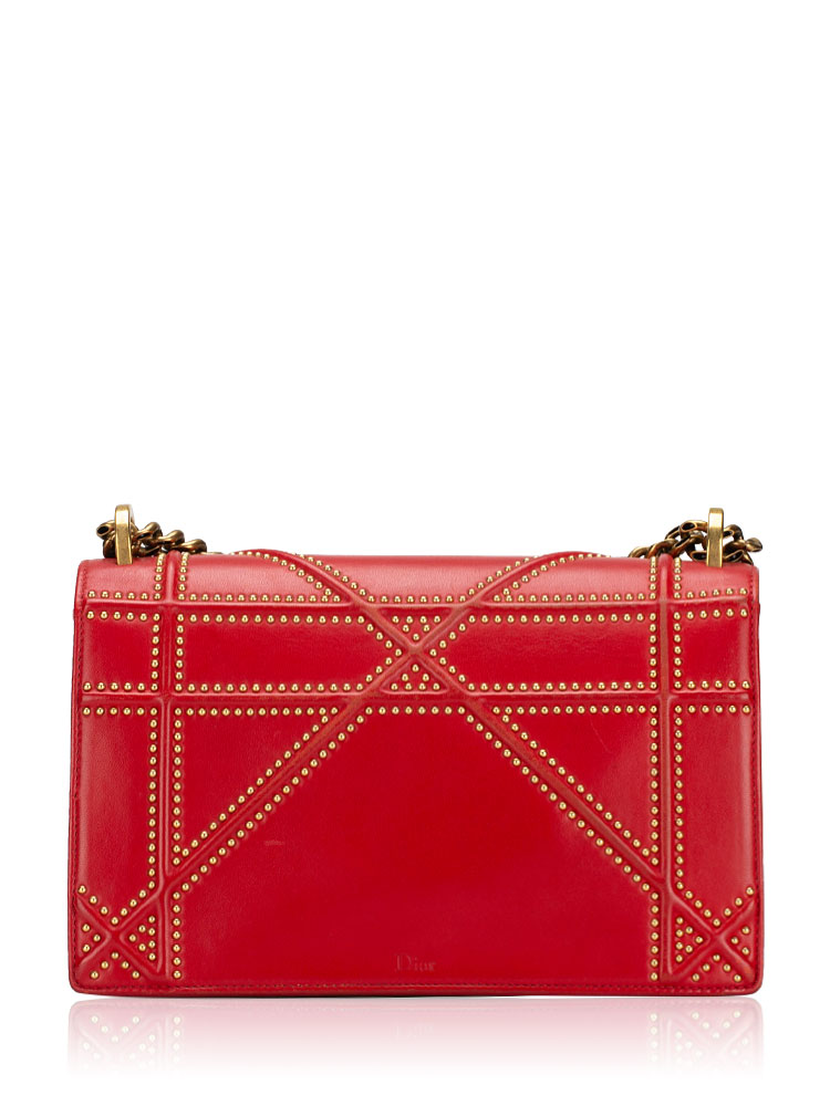 Calfskin Studded Medium Diorama Flap Bag Red