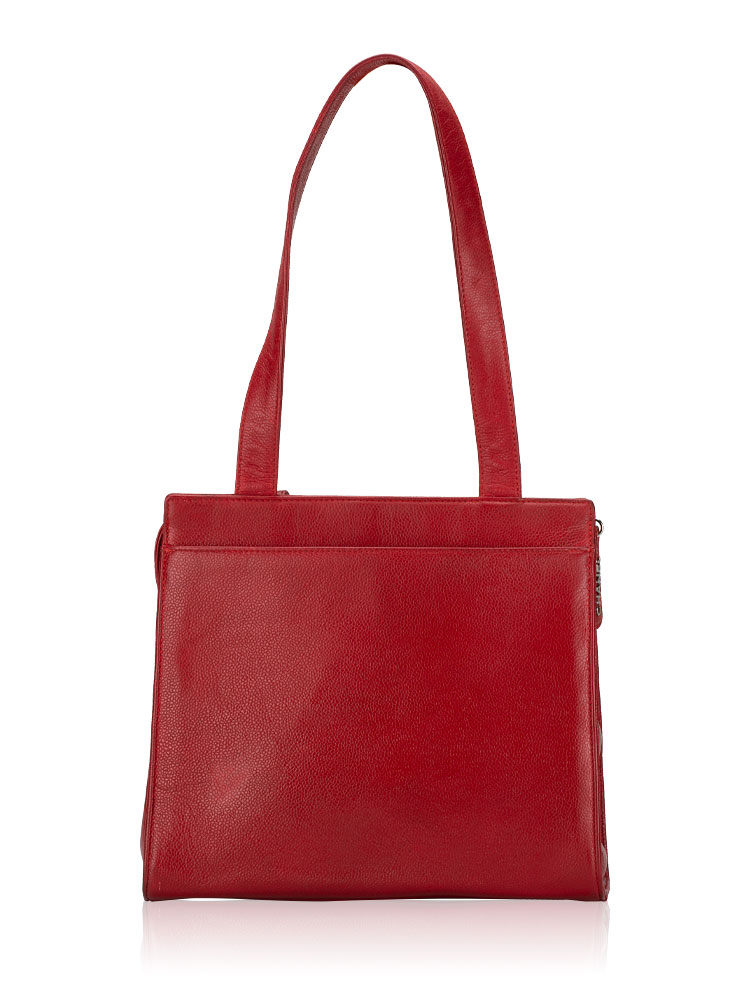 This tote is crafted of caviar leather. The bag features leather strap top handles and exterior pocket. The top zipper opens to a leather interior with zipper and patch pockets.