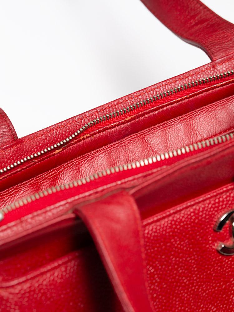 Vintage Caviar CC Lock Tote Red