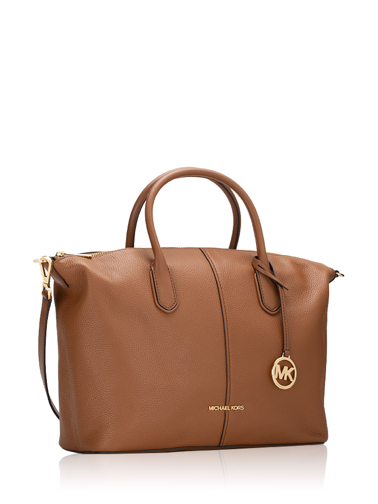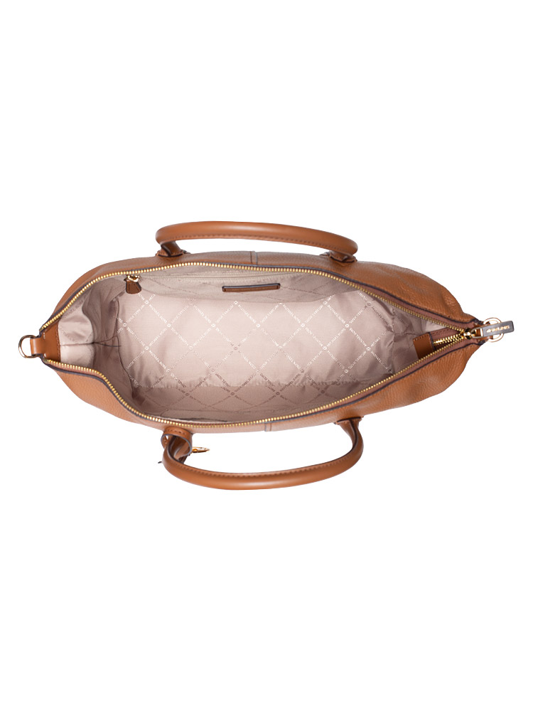 Made of pebble leather. The bag features a zip closure that opens to polyester lining with interior one zip pocket, one slip pocket.
