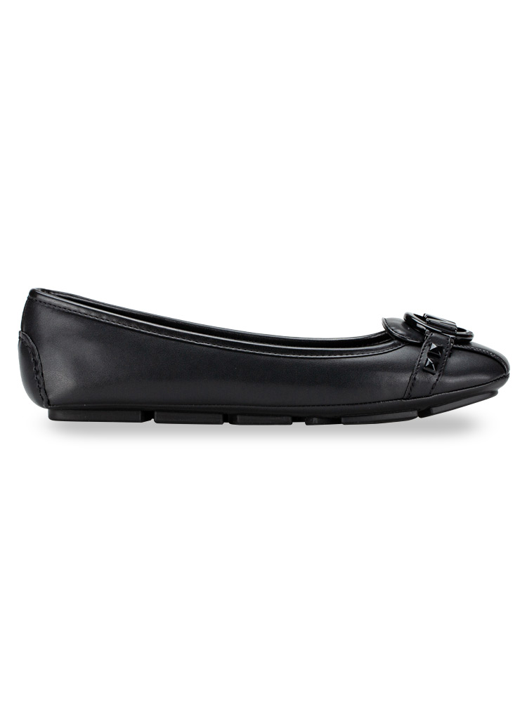 Made of faux leather fulton moccasins and polyurethane lining. The shoes features a closed round toe and MK metal logo medallion.