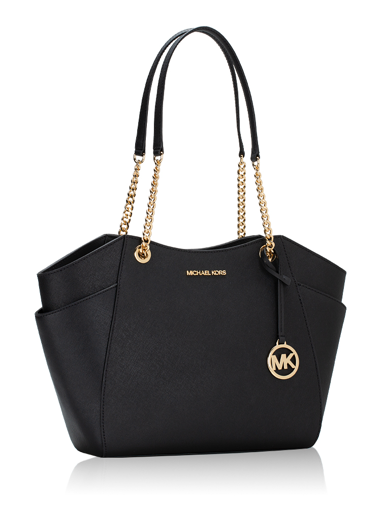 Jet Set Travel Large Chain Shoulder Tote Black