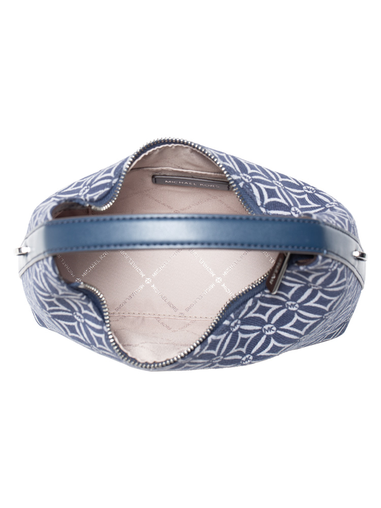 Made of signature jaqcuard and smooth leather. The bag features a zip closure that opens to polyester lining with interior one slip pocket.
