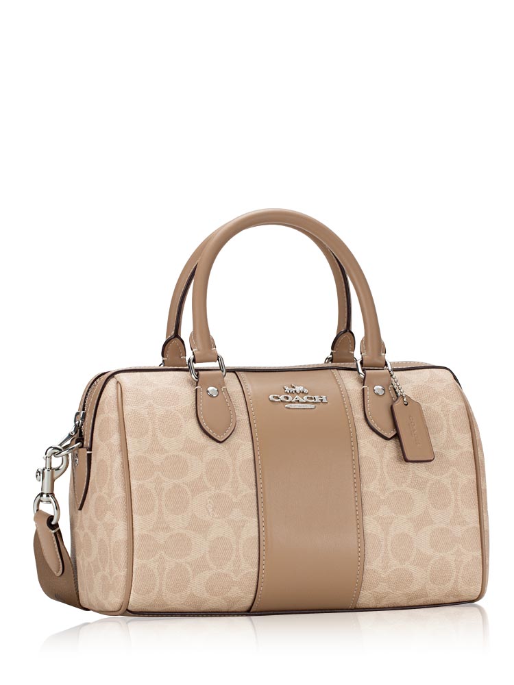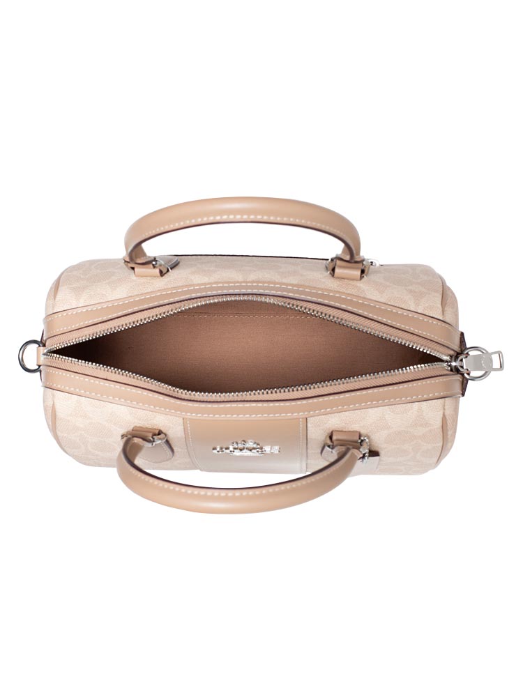 CW376 Signature Leather Stripe Rowan Satchel Sand Taupe