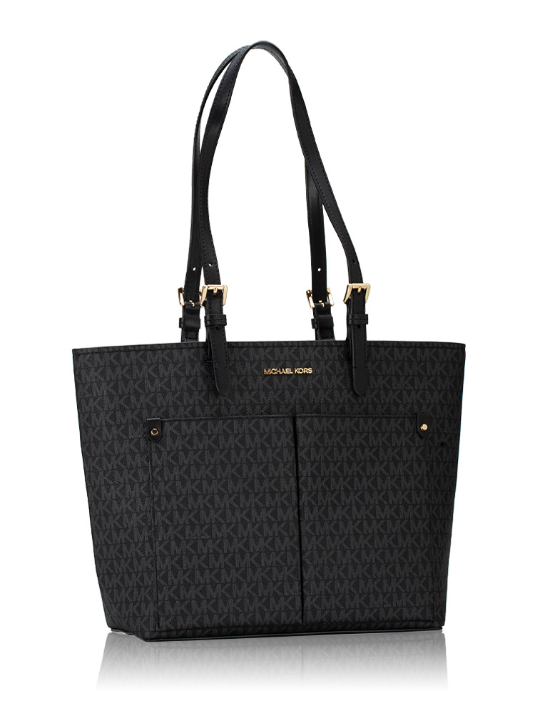Signature Jet Set Travel Medium Double Pocket Tote Black Gold