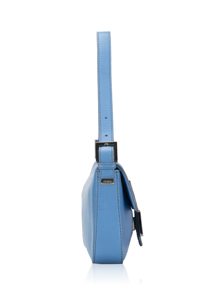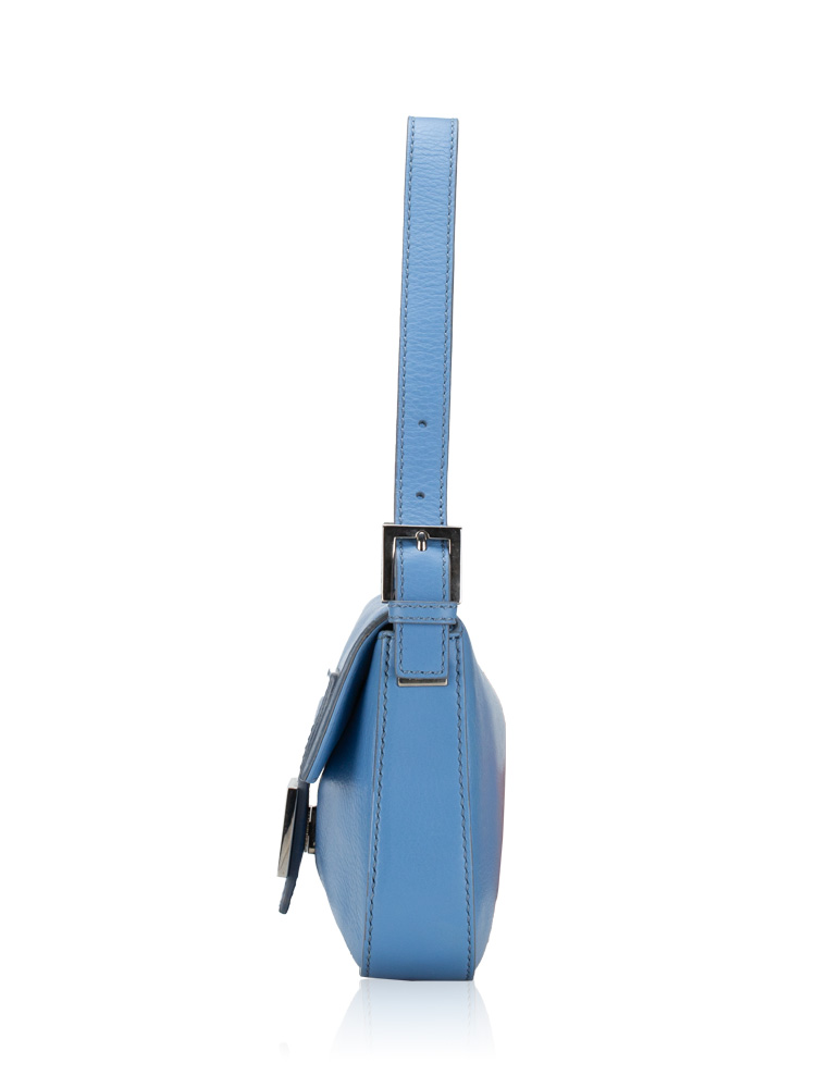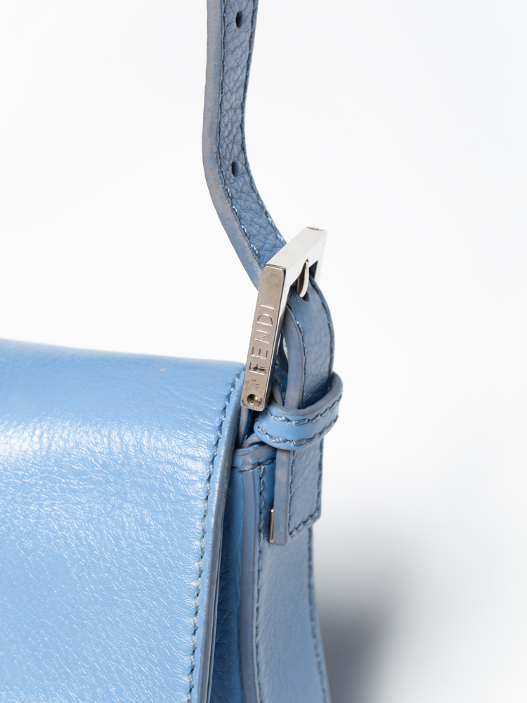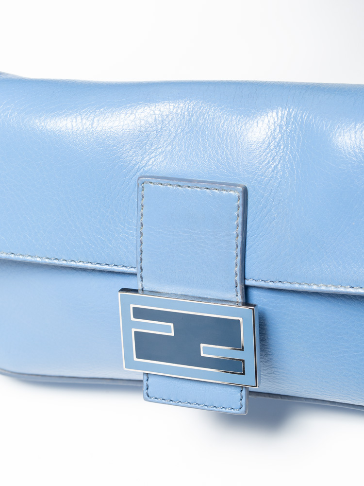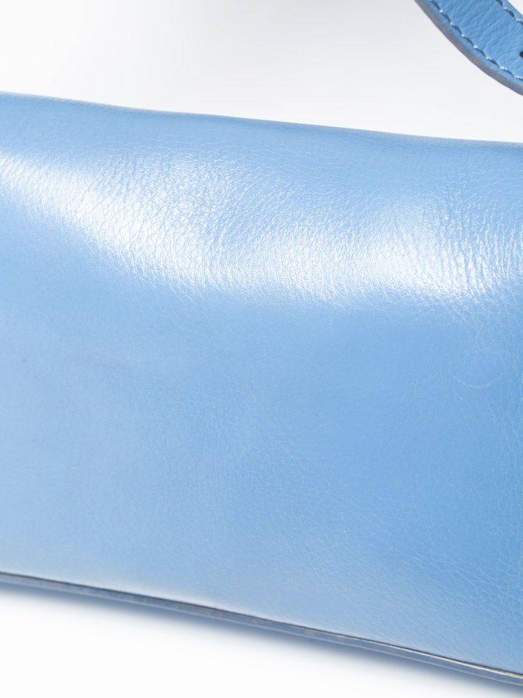 Vitello Enamel Baguette Convertible Shoulder Bag Azzurro Nebula