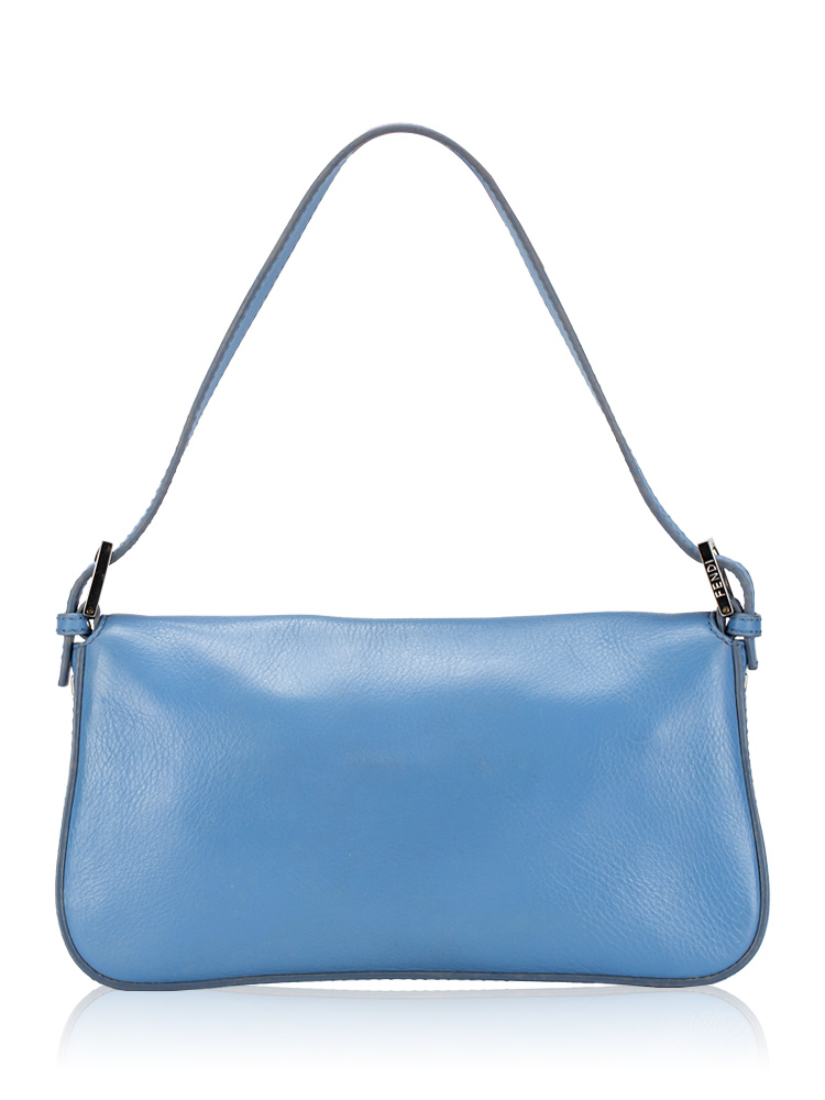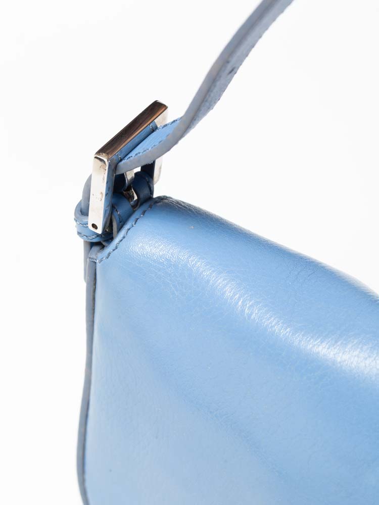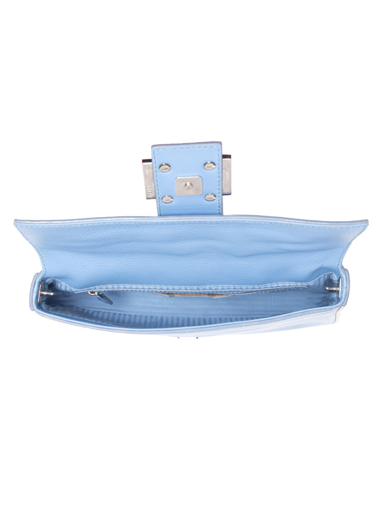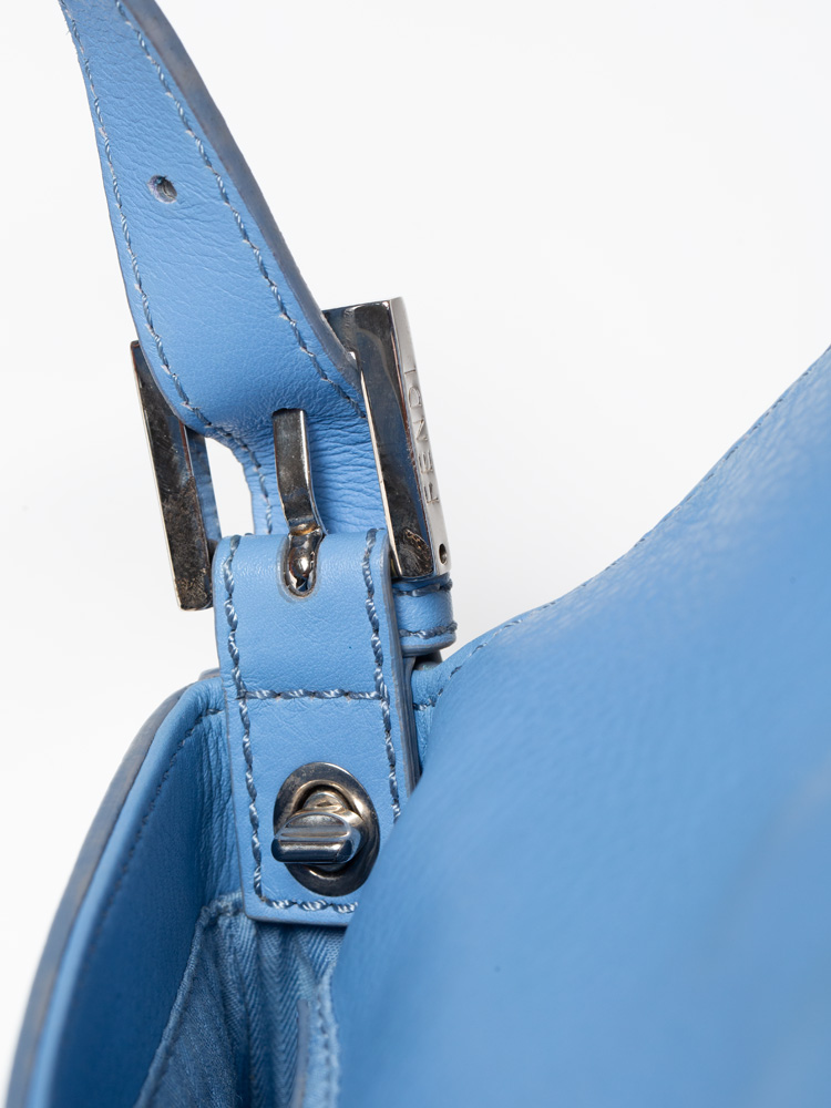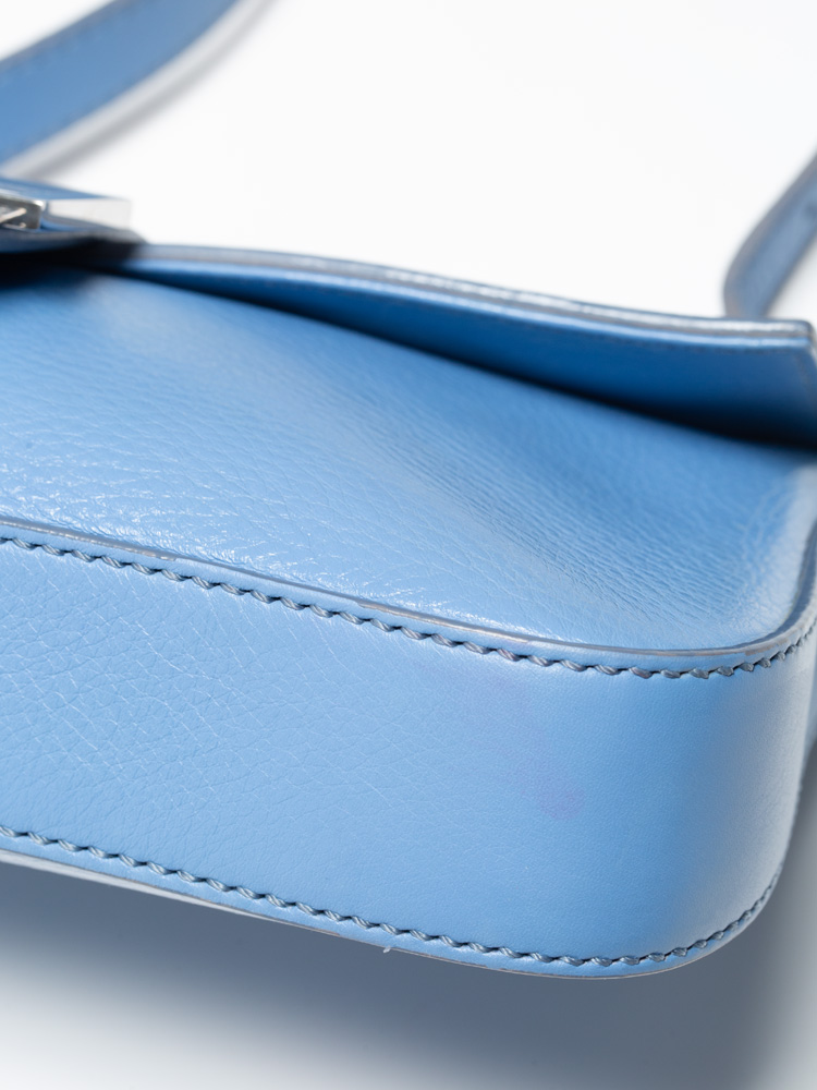 Vitello Enamel Baguette Convertible Shoulder Bag Azzurro Nebula