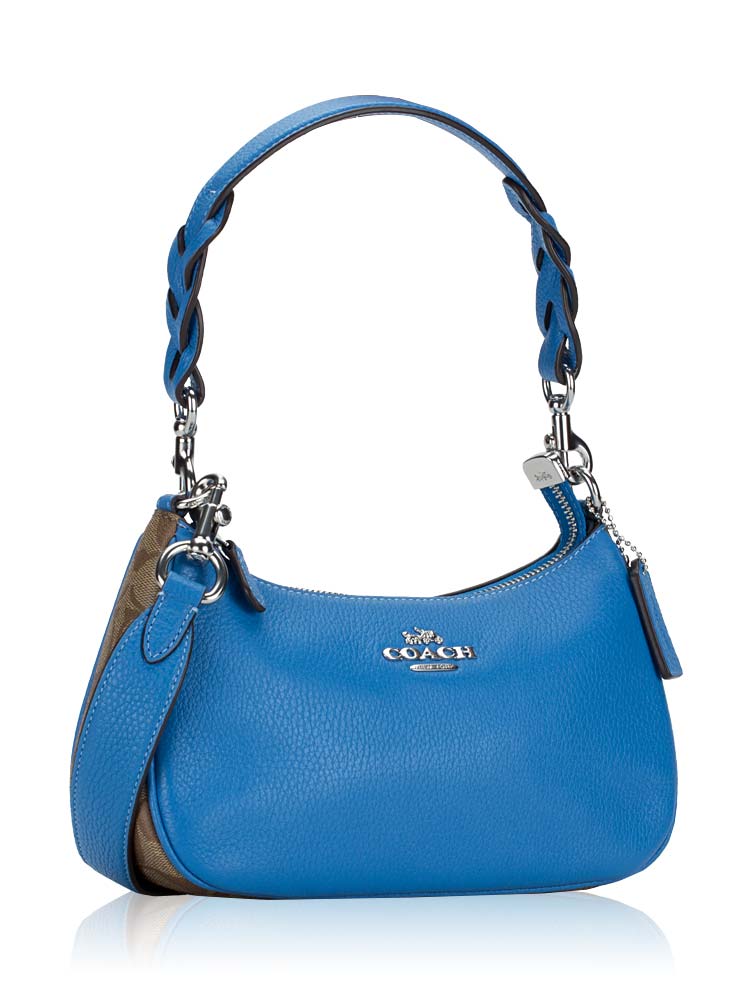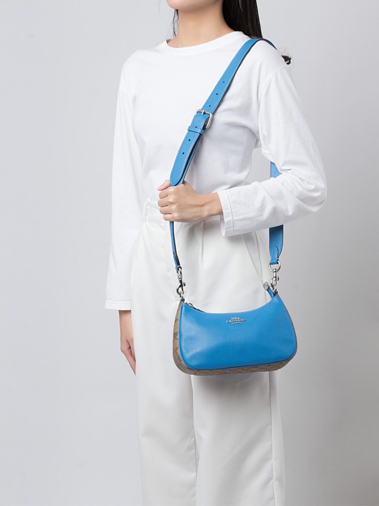 CJ590 Signature Teri Leather Shoulder Bag Khaki Racer Blue