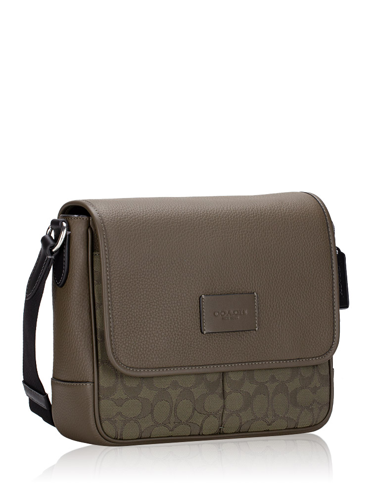 CE534 Signature Sprint Map Leather Shoulder Bag Olive Drab Utility Green