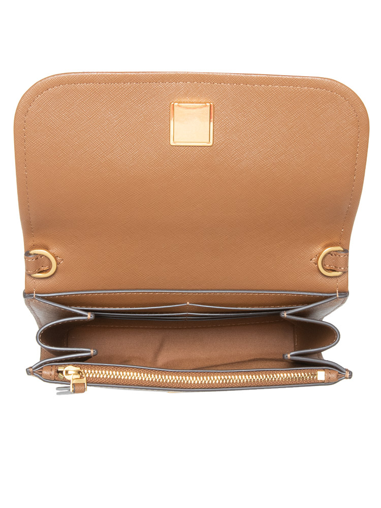 Crafted of saffiano leather with fabric lining. The bag features a flap with magnetic closure, 8 card slots, zip pocket, and rear eksterior slip pocket. It comes with an optional long strap.