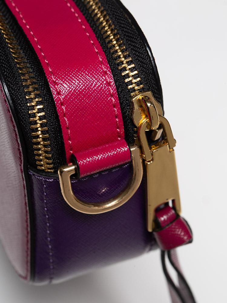 Small camera-style bag in Saffiano leather with an adjustable and swappable crossbody strap. Check out the strap shop for more options.