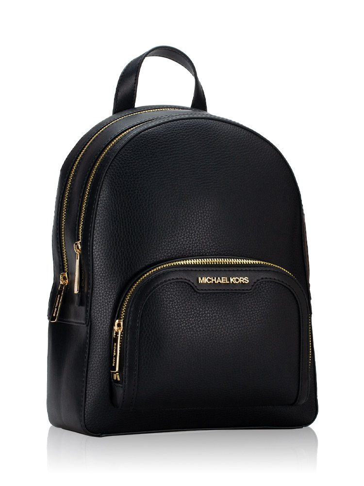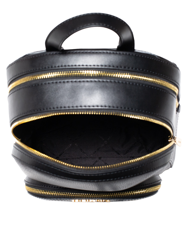 Jaycee Leather Medium Zip Pocket Backpack Black Gold
