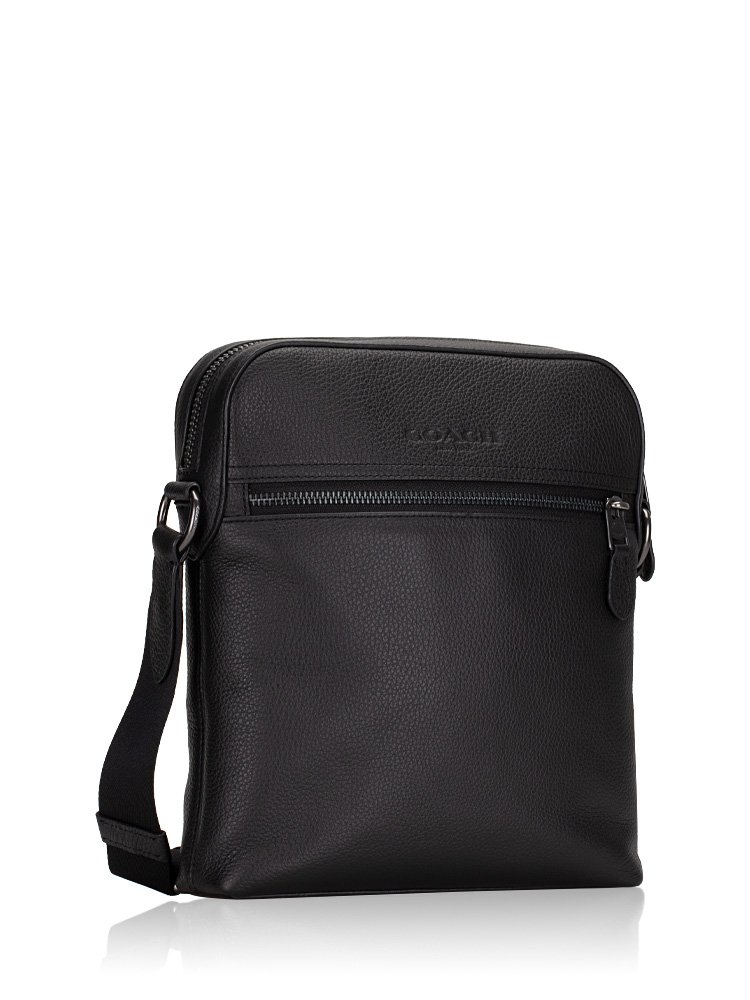 Crafted from refined pebble leather and accented with gunmetal-tone hardware, this flight bag features with a zip closure that opens to a fabric lining and a multifunction slip pocket.
