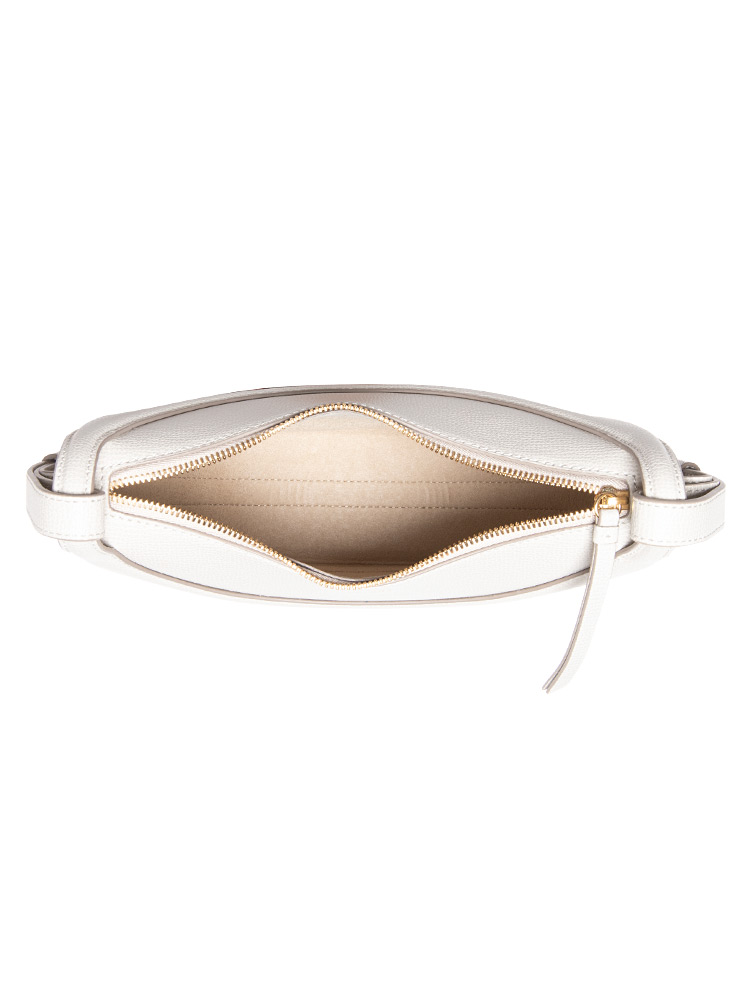 Crafted of textured calfskin leather material. The Numero Dix comes with two leather straps, a shorter one for shoulder carry and a longer one for a crossbody. The top zipper opens to microfiber interior with slip pocket.