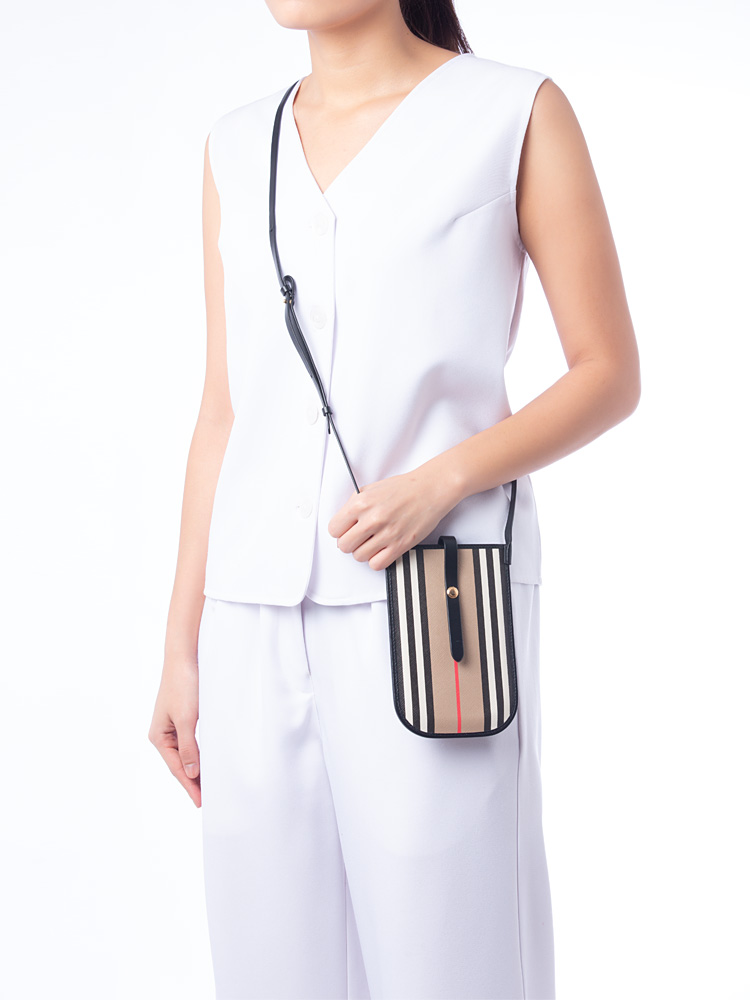 E-Canvas Icon Stripe Anne Phone Crossbody Archive Beige