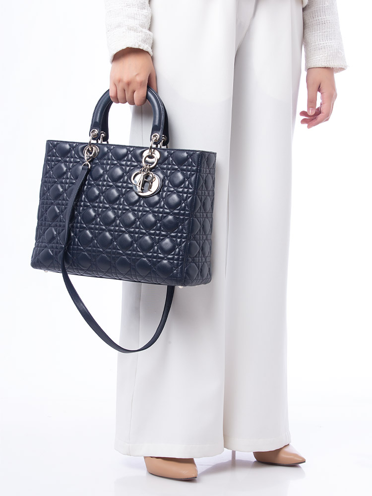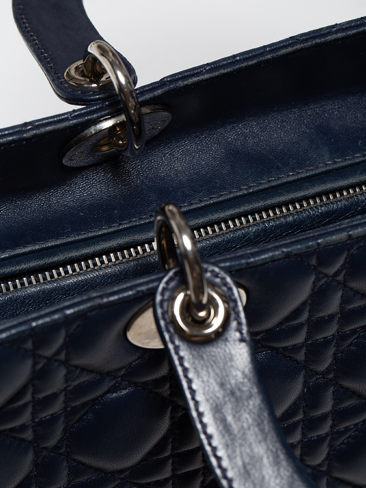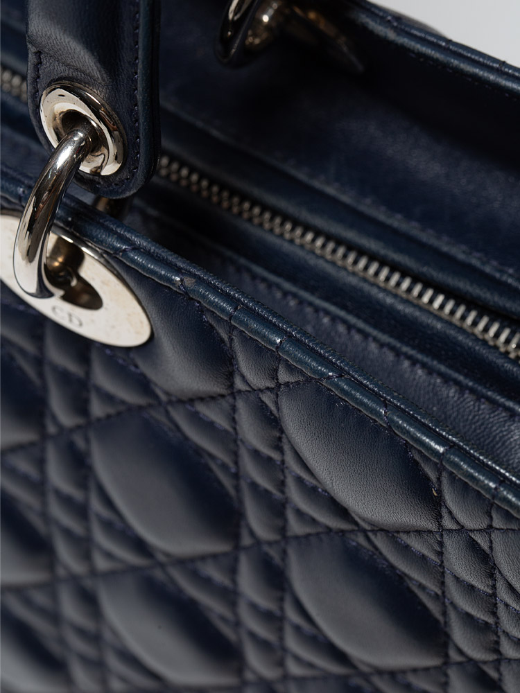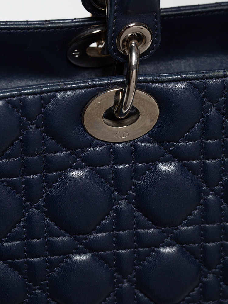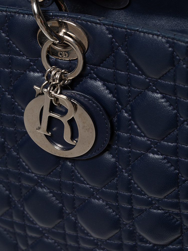 Lambskin Large Lady Dior Marine Blue