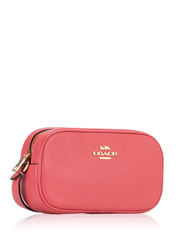 Made of pebbled leather. The wristlet features a zip closure that opens to fabric lining with two card slots, coach metal logo lettering.