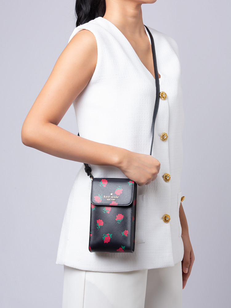 Madison Ditsy Rose Toss Ns Flap Phone Crossbody Black Multi
