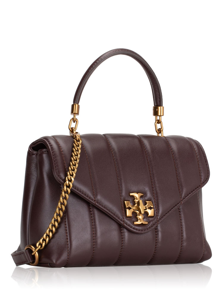 The timeless design and herringbone quilted lambskin on this piece from Tory Burchs Kira line, is now, more than ever a must-have for your bag collection.