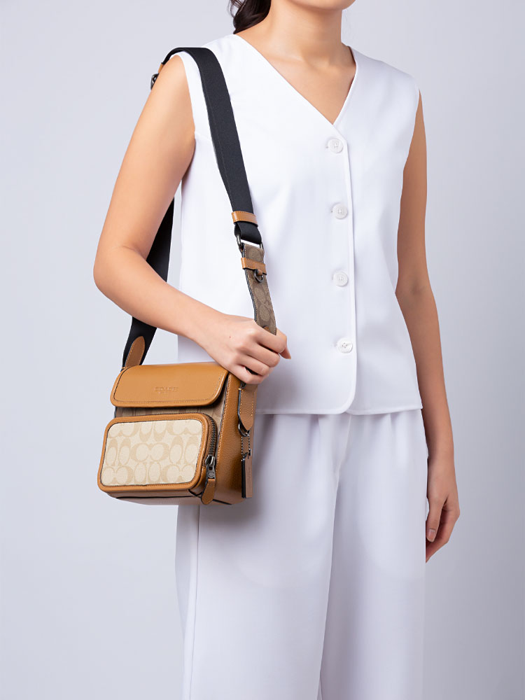 CS604 Signature Sullivan Colorblock Flap Crossbody Bag Light Saddle Multi