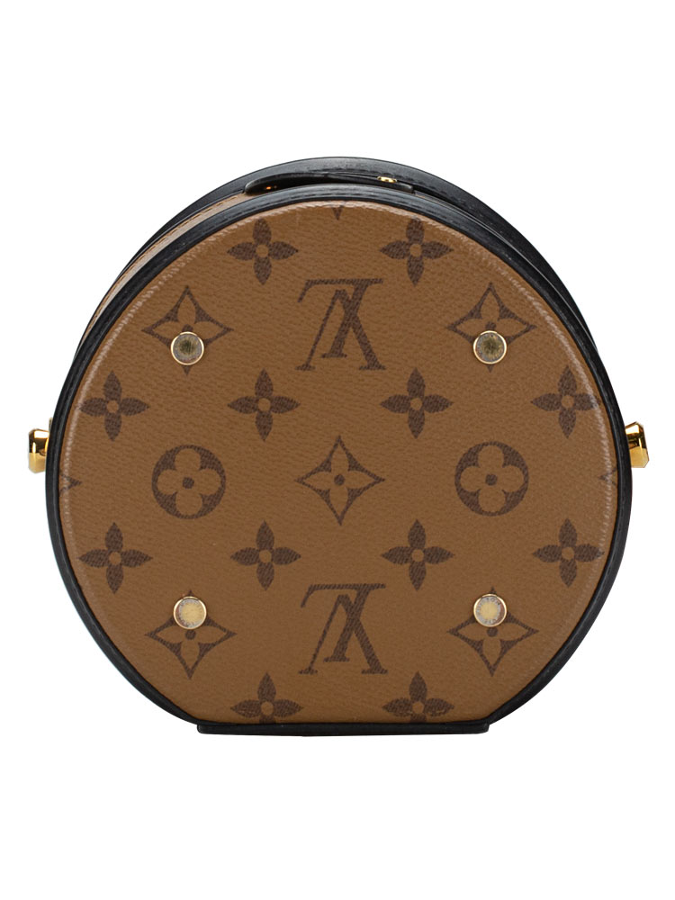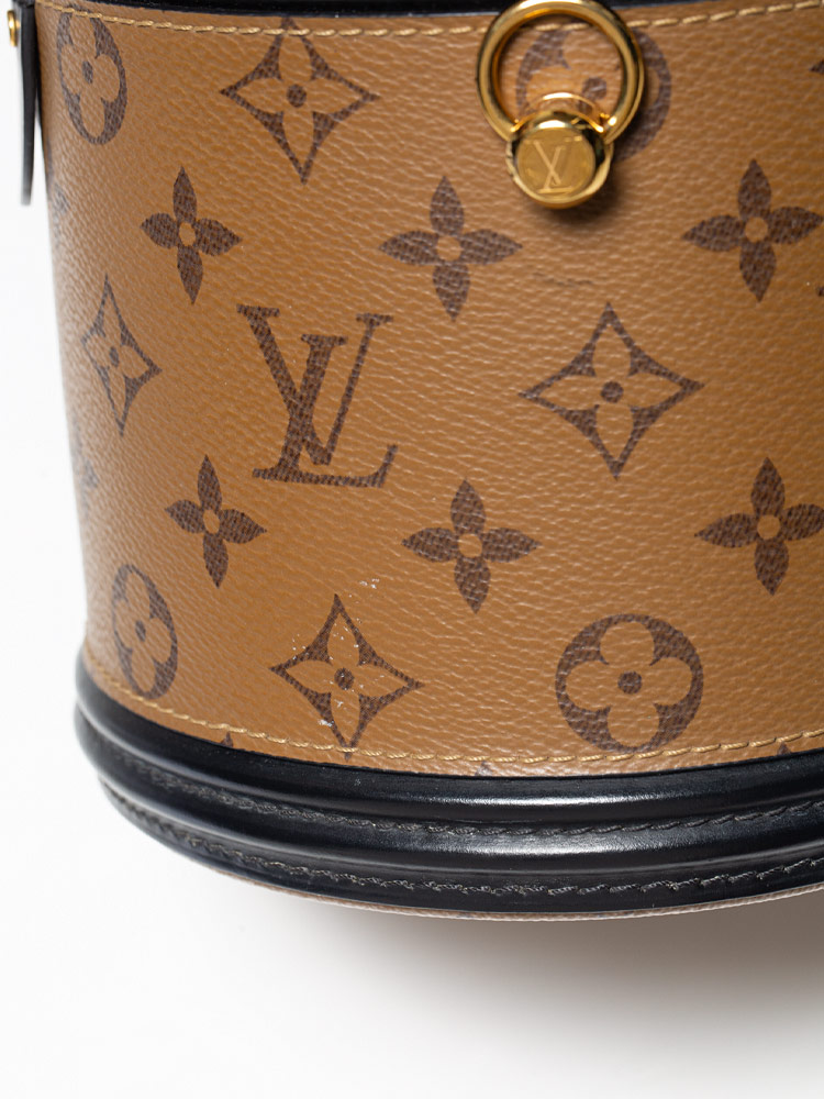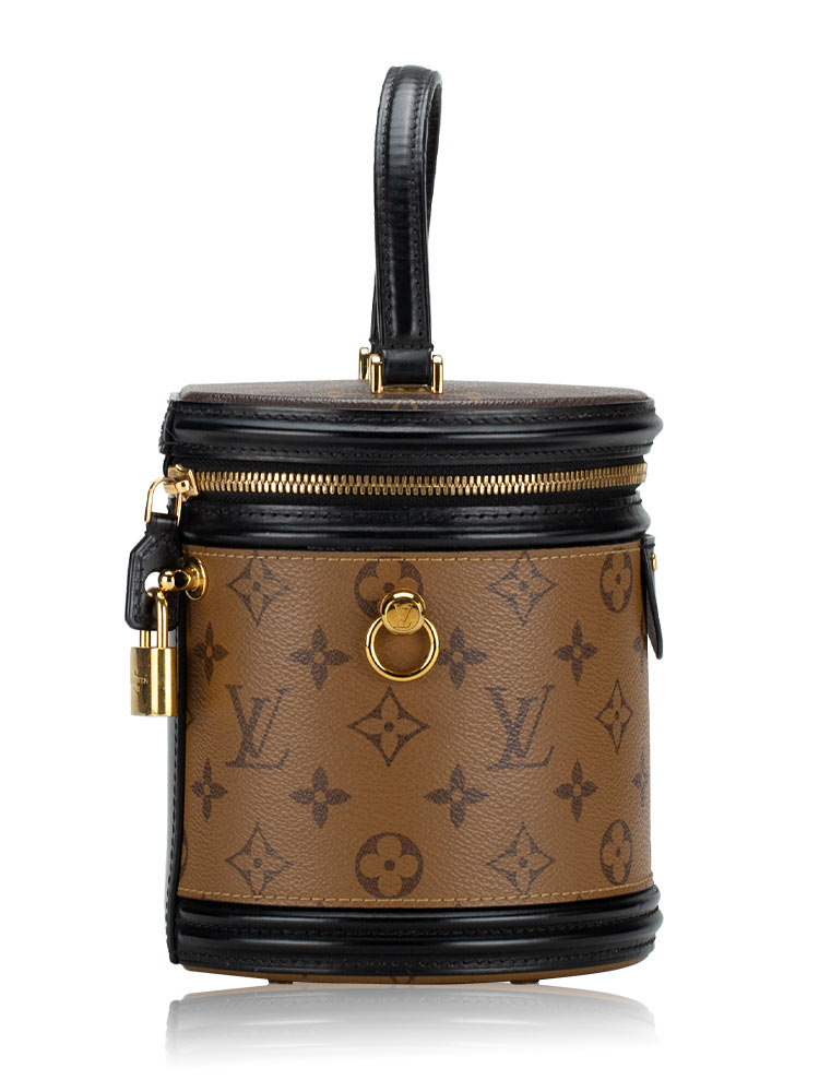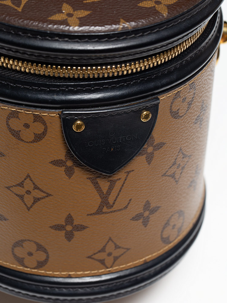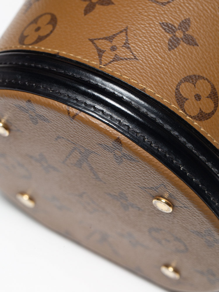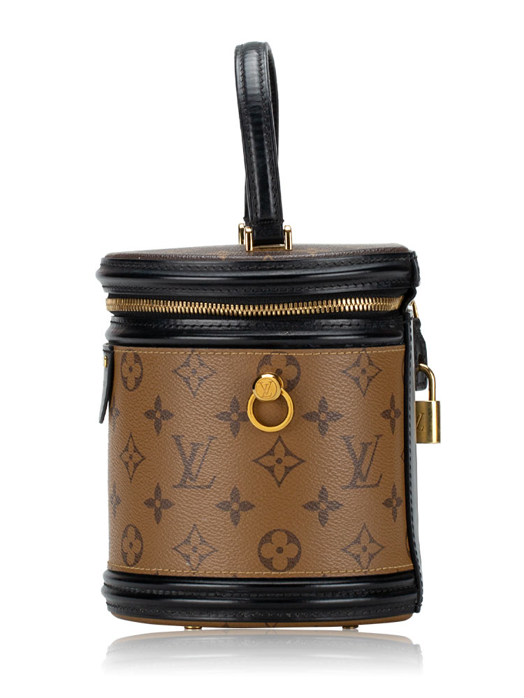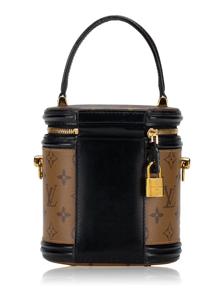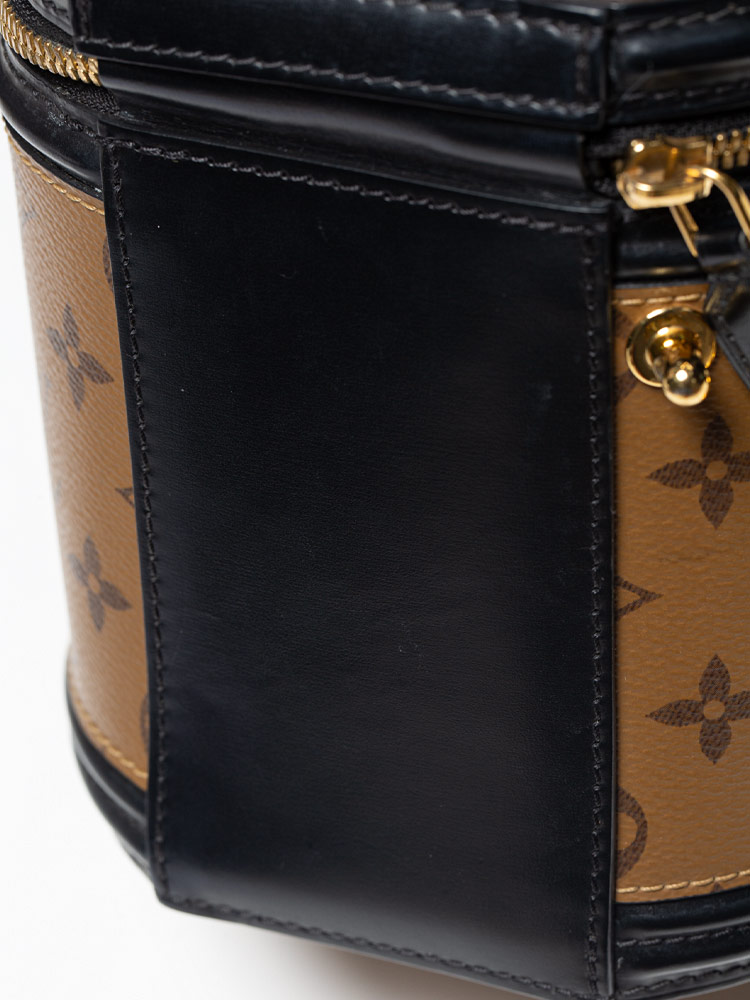 Crafted of monogram and reverse monogram coated canvas. The bag features a leather top handle, black leather trim, an optional shoulder strap, and brass hardware. The wrap-around zipper opens to a microfiber interior.