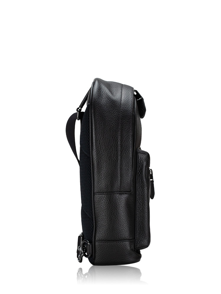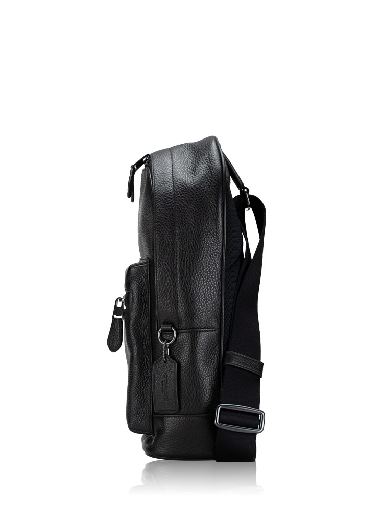 Crafted from refined pebble leather. Inside multifunction pocket. Zip closure, fabric lining. Outside zip pocket. Adjustable strap for crossbody wear.