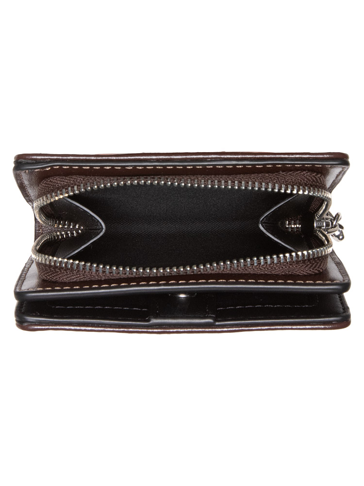 Made of signature jacquard and smooth leather. The wallet features a button closure that opens to fabric lining with interior full length bill compartment, id window, five card slots and exterior zip coin pocket.